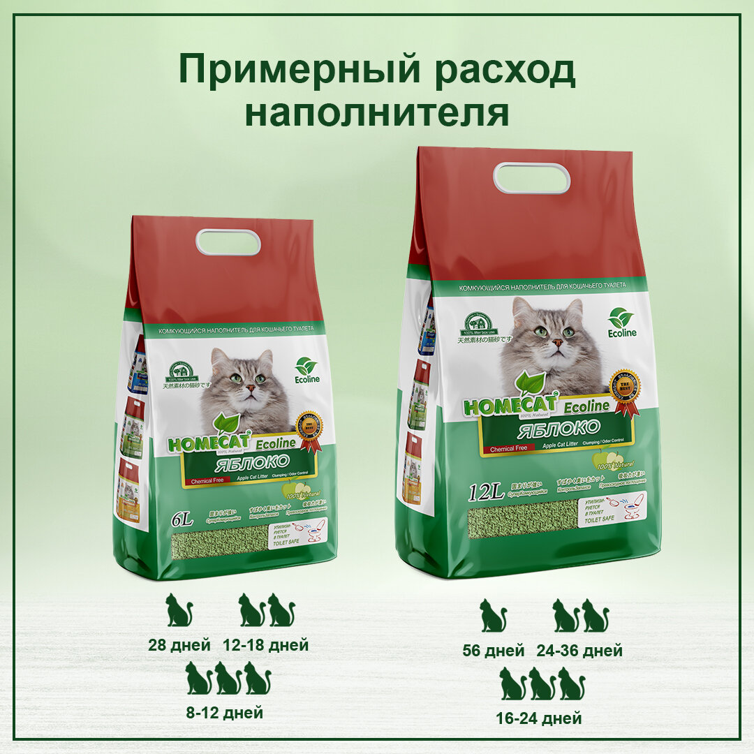 HOMECAT Эколайн комкующийся наполнитель для кошачьих туалетов с ароматом яблока (6 л)