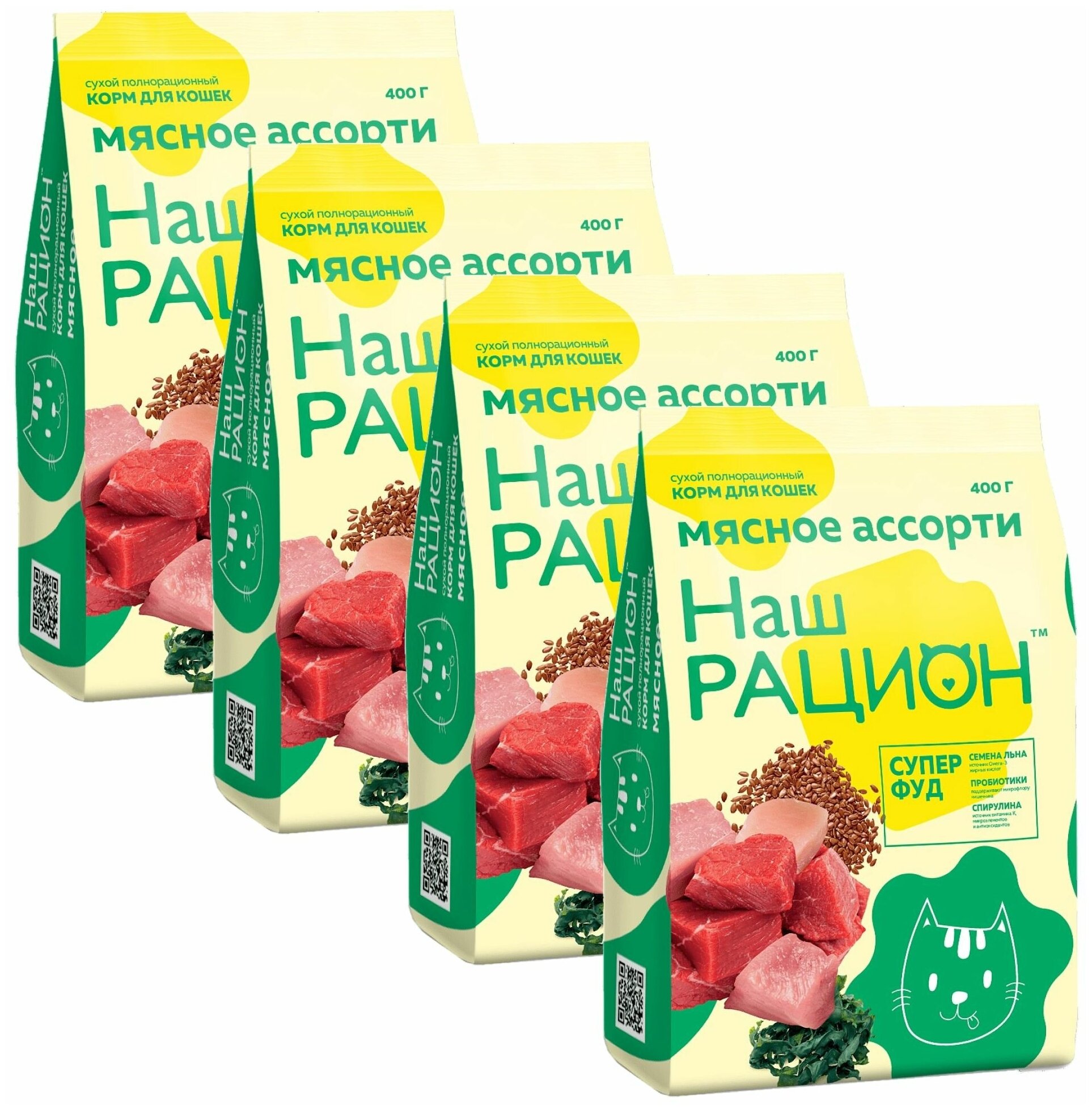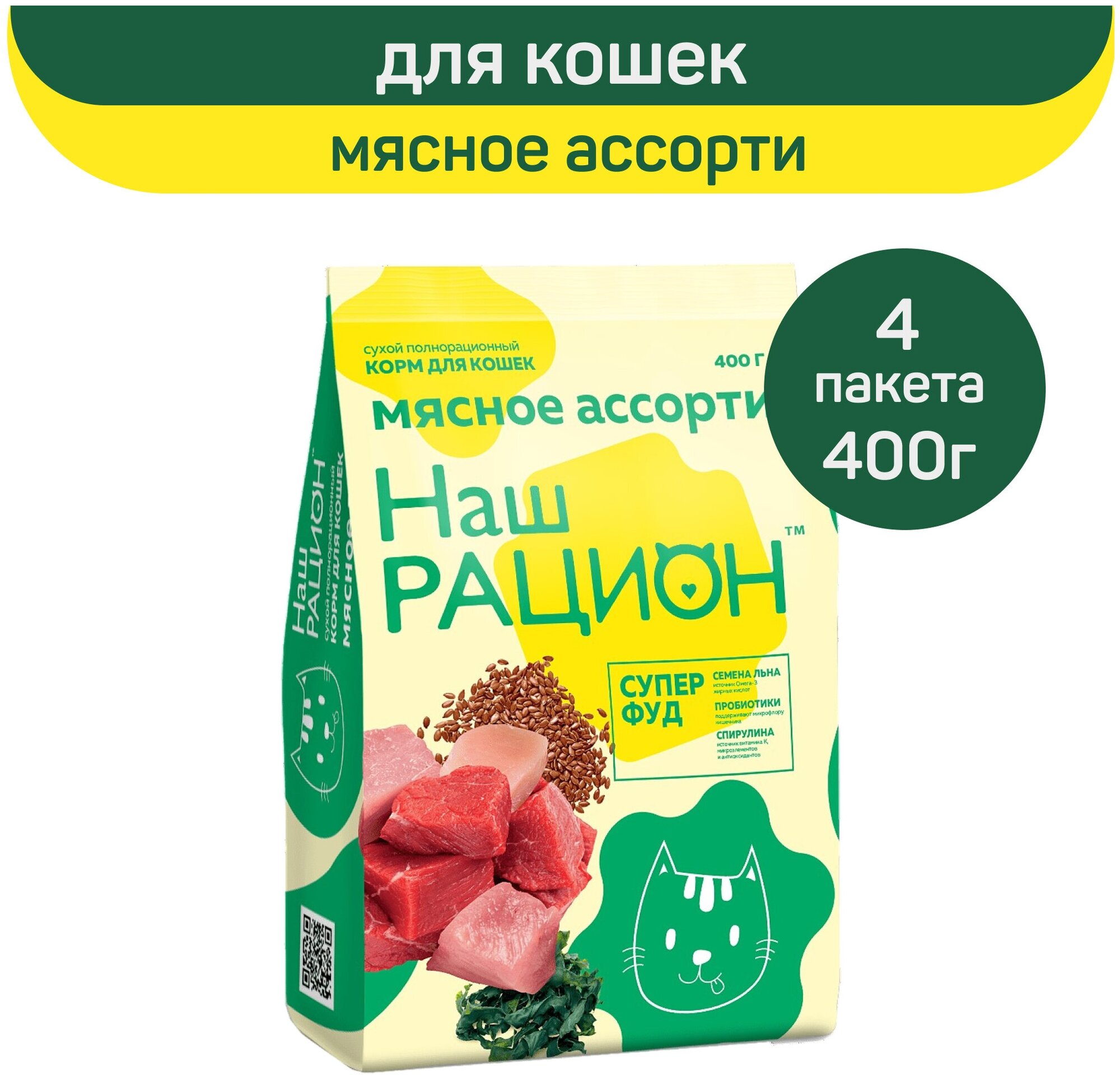Наш Рацион корм для взрослых кошек всех пород мясное ассорти (400 г)