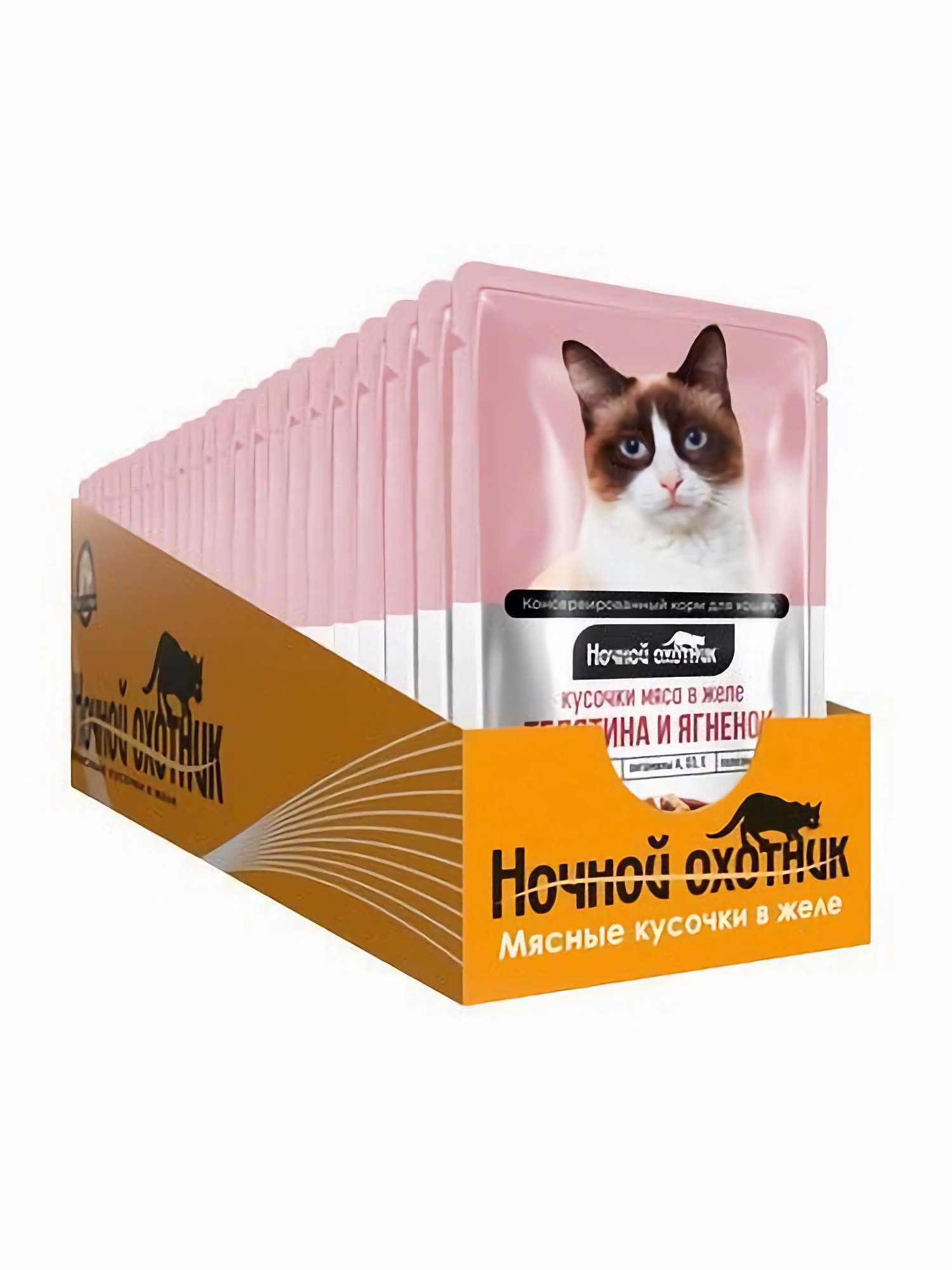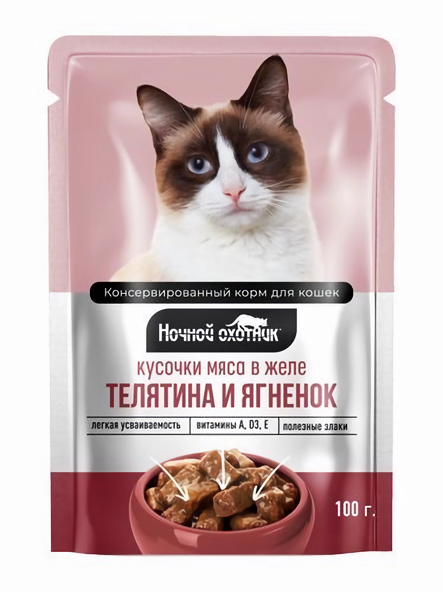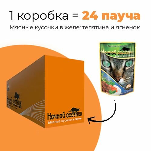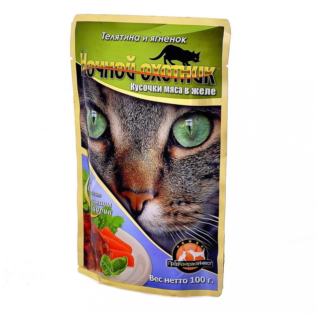 Ночной охотник влажный корм для кошек кусочки с телятиной и ягненком в желе (100 г)