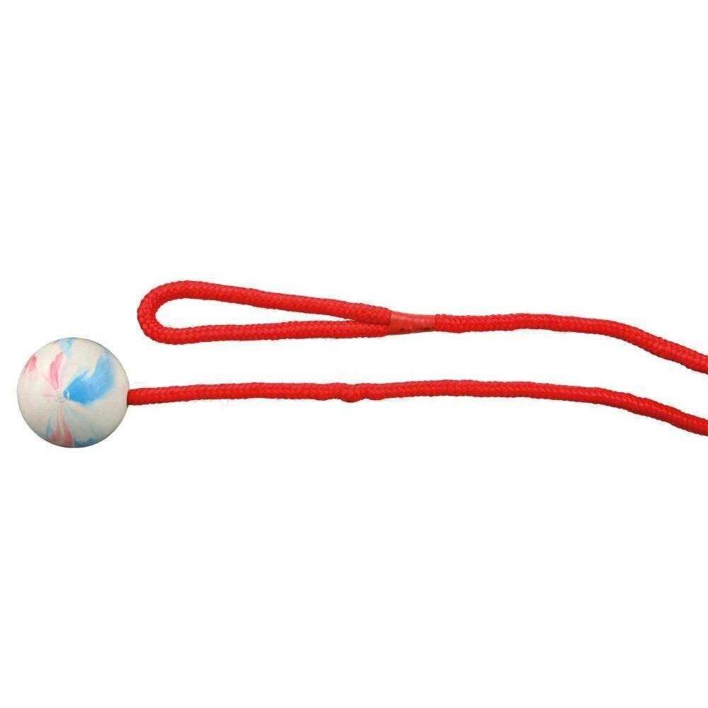 Интересная и полезная игрушка для собак в виде мяча на веревке от компании Trixie. Конструкция игрушки простая, где мяч расположен на самом конце. При активном жевании очень хорошо десны собаки активно массируются. Крепкая ручка на втором конце веревки имеет надежную петлю для удобного удержания в руке. Длина веревки 100 см, а диаметр мячика - 5 см.Мяч выполнен из крепкого и эластичного материала (натурального каучука), который безвреден для здоровья питомца. Веревка сделана из натуральных хлопковых нитей, сплетенных между собой таким образом, что разорвать из практически невозможно. Все имеющиеся узлы на веревке завязываются вручную.Игрушка сделана специально для тех собак, которые любят метание игрушек или игры в перетягивание.