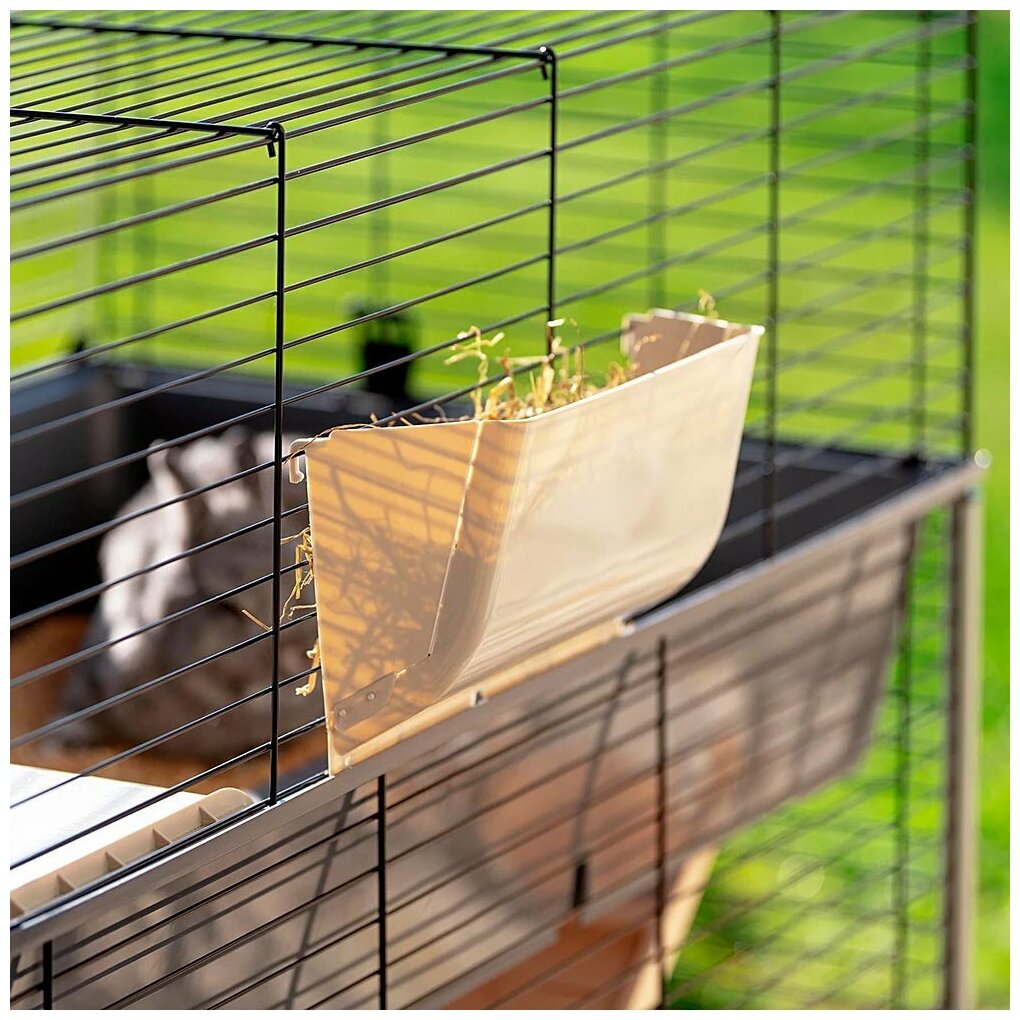 Это настоящий дом для ваших грызунов! Rabbit 100 Double - просторная клетка, разделенная на 2 этажа, соединенных между собой удобной деревянной лесенкой. Поставляется в комплекте с аксессуарами, включая кормушку для сена, поилку и домик для отдыха. Rabbit 100 Double оборудована широко открывающейся дверкой спереди и маленькими скользящими дверками, безопасными для животного. Клетку легко чистить, она полностью разбирается и продается в компактной упаковке.