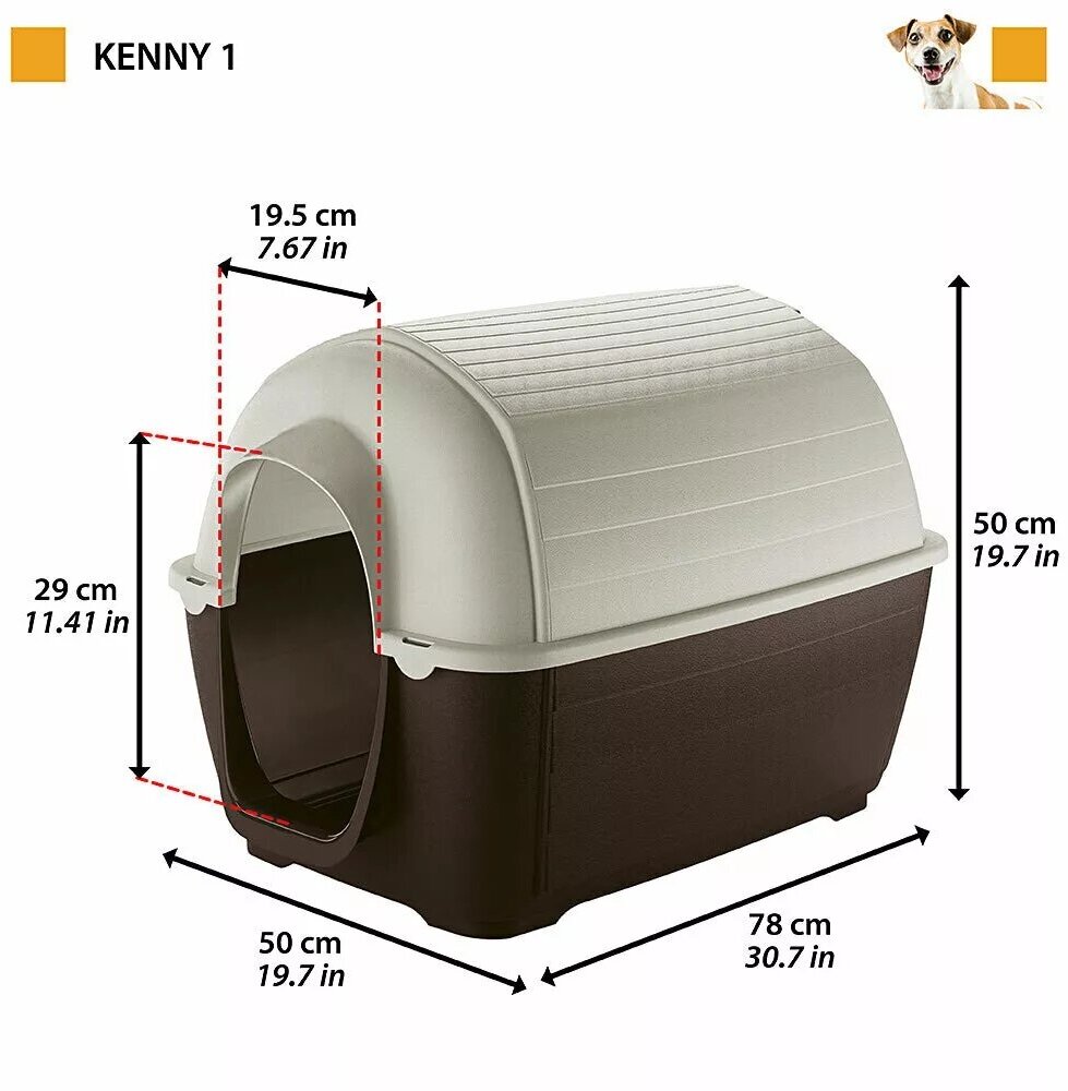 Вентиляционная система для максимальной циркуляции воздуха внутри Система стока воды для избежания скопления влаги Будка хорошо изолирована от земли, благодаря специальному пластиковому основанию Легкая уборка благодаря разборной конструкции экологичность: продукт изготовлен из переработанного пластика Пять размеров для собак всех пород Линейка аксессуаров - х/б подушка и пластиковая дверка Внутренние размеры (Д = длина, Г = глубина, В = максимальная внутренняя высота): KENNY MINI: L 37 x W 59 x H 37 cm KENNY 01: L 47 x W 70 x H 47 cm KENNY 03: L 56 x W 82 x H 56 cm KENNY 05: L 66 x W 90 x H 66 cm KENNY 07: L 75 x W 97 x H 75 cm Kenny - пластиковая будка для собак для использования на улице в форме иглу, обеспечивает отличную изоляцию при высокой и низкой температуре. Kenny изготовлена из прочного пластика и отличается эффективной вентиляционной системой, а также системой стока воды для обеспечения сухой среды. Будка имеет большое отверстие для входа и основание определённой формы, обеспечивающее прекрасную изоляцию от земли. В линейке будок Kenny вы обязательно найдете подходящую вам модель. У вас маленькая собачка или собака средних и больших размеров? Выберите будку из пяти размеров, начиная от 66 см до 112 см длиной. Будку легко и удобно убирать! Kenny состоит из двух частей: поддона и крыши, которые соединяются с помощью крючка. В качестве дополнительного аксессуара вы можете приобрести подушку из х/б ткани и пластиковую дверку. Kenny – это экологически устойчивый продукт: в своем производстве он использует переработанные материалы, тем самым защищая окружающую среду, в которой мы живем с нашими друзьями-животными.