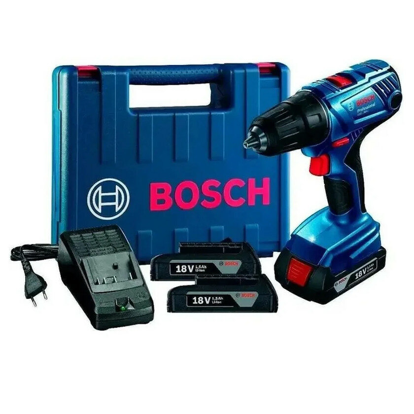 Литий-ионный аккумулятор с напряжением 18 В и ёмкостью 1,5 А•ч позволит долго эксплуатировать инструмент, а встроенная защита позволит не беспокоится о глубокой разрядке и перегрузке. Благодаря отсутствию эффекта памяти аккумулятора дрель-шуруповерт Bosch всегда готов к работе, даже после долгого перерыва.