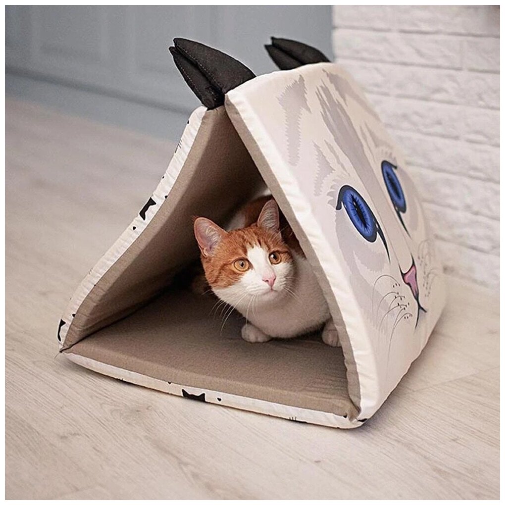 Если ваш котёнок любит дремать вдали от посторонних глаз, мы уверены, что Pyramid ему подойдет как нельзя лучше! Этот маленький дом был создан как воплощение особой уединённости: он напоминает форму пирамидального туннеля и имеет два удобных боковых отверстия, чтобы ваша подруга могла входить и выходить из домика, когда ей заблагорассудится, а также выглядывать из своей «крепости» и не спускать глаз с окрестностей. Этот маленький домик, изготовленный из приятной на ощупь хлопчатобумажной ткани с аккуратной отделкой и мягким наполнителем для максимального комфорта, не останется без внимания вашего пушистого питомца. На его передней части изображена симпатичная мордочка, которая так и манит нежиться и обниматься. Домик полностью пригоден для стирки в стиральной машине при низких температурах (30 ° C).