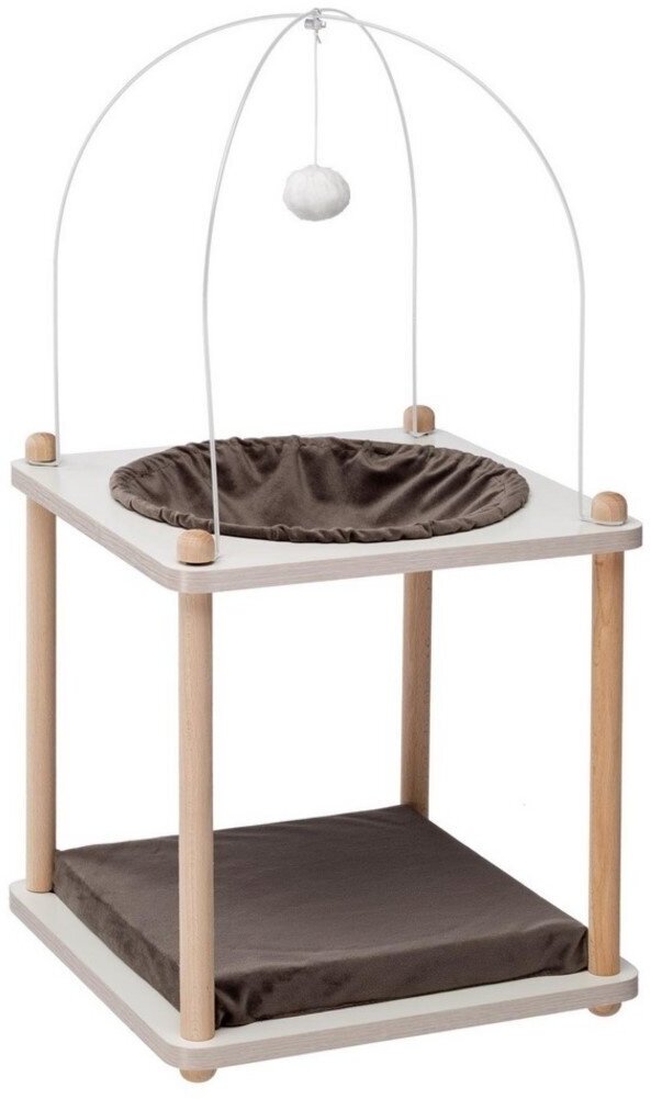Мебель для кошек Конструкция из прочной FSC™ древесины Удобное спальное место с мягкой подушкой, идеально подходящее для укрытия Оборудован гамаком из мягкой бархатистой ткани Подвесной плюшевый игровой мяч для развлечения животного Открытый по бокам нижний этаж позволяет вашему животному наблюдать за окружающей обстановкой Удобные и прочные ножкиYoko – это оригинальная мебель для кошек, которая состоит из мягкой комфортной зоны, над которой возвышается конструкция, похожая на купол, позволяющая вашему котенку почувствовать себя маленьким королем в своем доме! Она предназначенная для того, чтобы обеспечить вашему питомцу место для отдыха или игры одновременно. Yoko представляет собой удобную платформу с бархатной подушкой в нижней части, идеально подходящую для ежедневного сна и, расположенного в верхней части мягкого гамака из бархатистого материала. На гамаке подвешен маленький плюшевый шарик для развлечения вашего котёнка – его можно хватать, царапать и раскачивать. Забравшись на Yoko, ваше животное будет с удовольствием наблюдать за окружающим миром и держать все под контролем: первый этаж, фактически открытый со всех сторон, позволяет видеть все, что происходит вокруг. Yoko изготавливается из сертифицированной FSC™ древесины, поступающей только из лесов, которые управляются правильно и ответственно в соответствии со строгими экологическими, социальными и экономическими стандартами, а также в других контролируемых местах происхождения лесоматериала. Основание оборудовано ножками, которые обеспечивают максимальную устойчивость. В ассортименте когтеточек и мебели для кошек от Ferplast вы найдете много различных моделей, способных удовлетворить любые потребности.