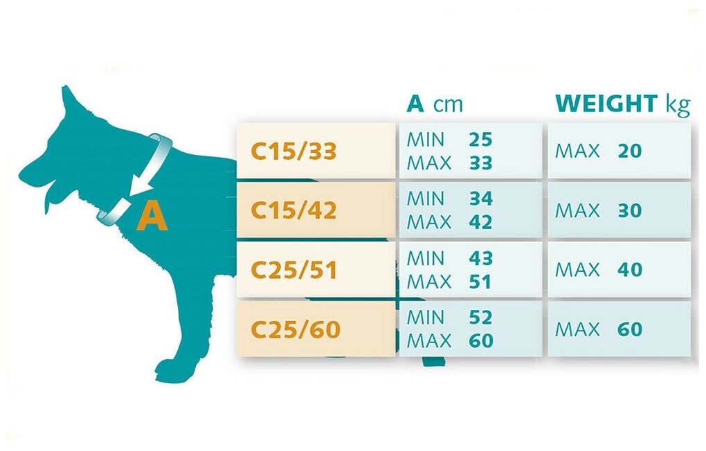 Ошейник для собак на мягкой подкладке и застежкой с микрорегулировкой Ergofluo : максимальный комфорт для вашей собаки, легкость в использовании и идеальная посадка! Изготовленный в флуоресцентных цветах, этот ошейник с мягкой подкладкой по всей длине имеет эффективную запатентованную систему застегивания с микрорегулировкой, поэтому вы можете идеально подогнать его по размеру вашей собаки. Произведенный из прочного нейлона этот поводок оснащен системой быстрого отстегивания и вы можете снять его при помощи простого движения. Линейка включает множество вариантов в различных модных цветах. Модели отличаются по длине (от 25 до 60 см), ширине (15 или 25 мм) и весу собаки (от 20 до 60 кг). Модель С15/33 , например, подходит для собак не тяжелее 20 кг, С15/42 - для собак до 30 кг, С25/51 отлично подойдет для собак весом до 40 кг, а самая большая модель С25/60 - для собак весом до 60 кг. Для создания безупречного образа вы можете использовать ошейники, сочетая их поводками и шлейками Agila Fluo . * Эргономичный ошейник с мягкой подкладкой из полиуретана * Инновационная система застежки с двойной микрорегулировкой, запатентованной компанией Ferplast * Быстро и легко надевается и подгоняется по размеру * Безопасная застежка * Запатентованная система быстрого отстегивания * Высококачественные износостойкие материалы * Удобный и прочный * Максимально допустимое тяговое усилие: собаки весом до 60 кг * В наличии различные размеры и цвета * Сочетается с поводками линейки Ergofluo и шлейками Agila Fluo