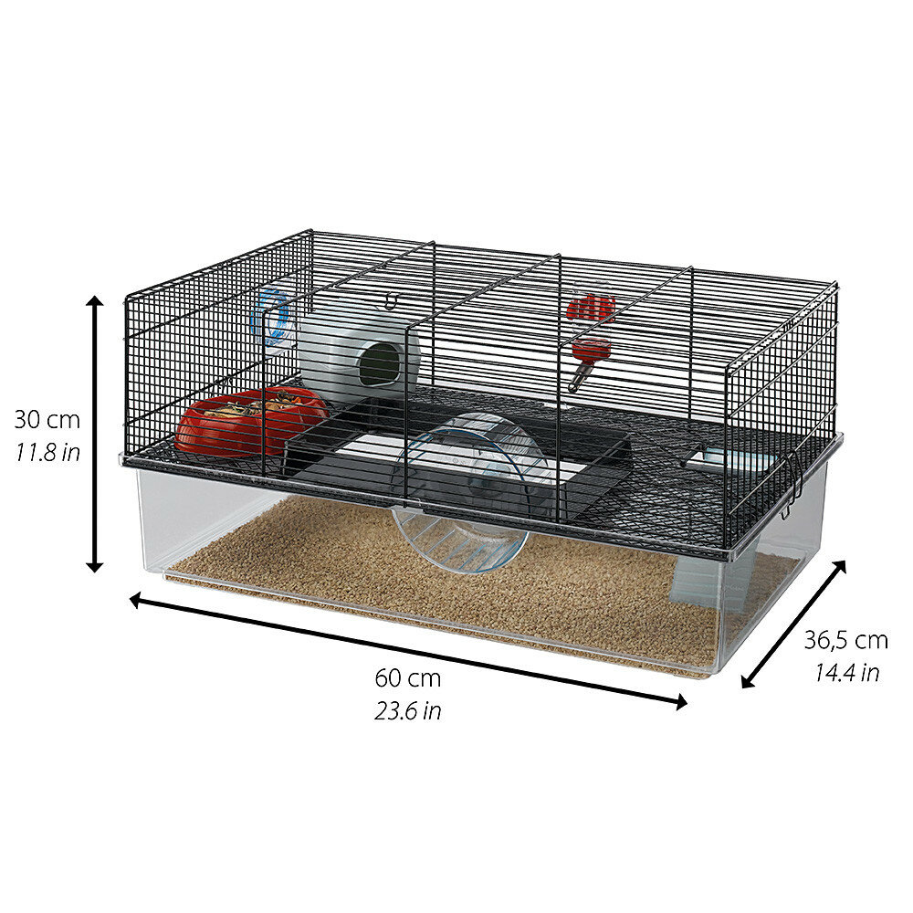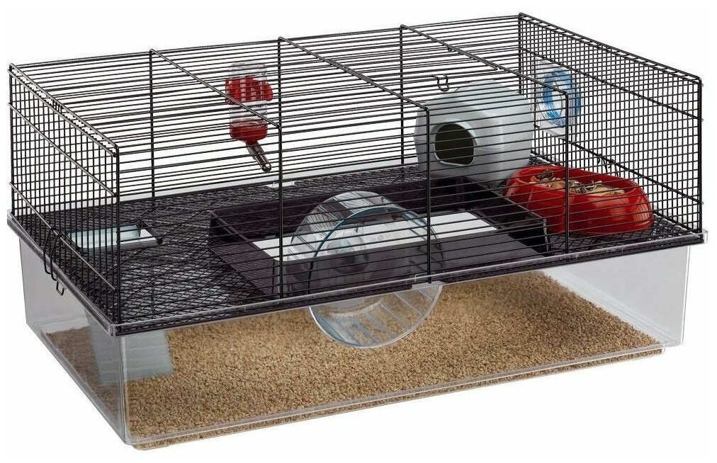 Клетка Favola от компании Ferplast для хомяков состоит из большого прозрачного пластикового поддона, разработанного для размещения в нем опилок, и верхней части из металлической решетки. Клетка отличается двухуровневой структурой, соединенной пластиковыми лесенками, и оборудована отверстием в центральной части, которое можно использовать для расположения колеса. Клетка Favola также подходит для содержания мышей. Ее можно быстро разобрать, открепив специальные фиксаторы по бокам. Клетка также подходит для соединения с другими клетками или аксессуарами. Клетка Favola идет в комплекте с аксессуарами, среди которых гнездо, кормушка, поилка и колесо, позволяющее вашему питомцу всегда оставаться в форме.