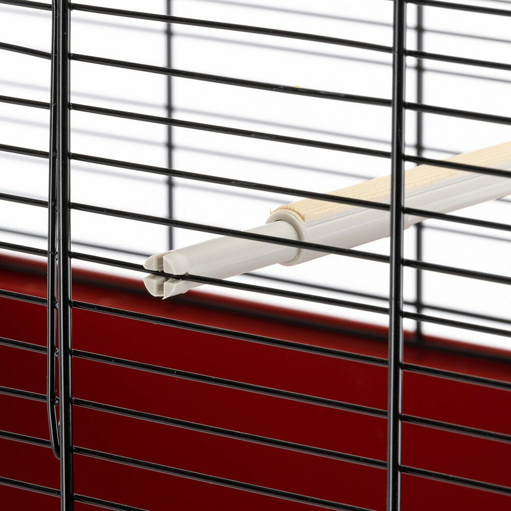 Record 3 - прямоугольная клетка средних размеров, идеально подходит для канареек, экзотических и других маленьких птиц. Идет в комплекте с аксессуарами, среди которых: пластиковые жердочки с резиновым покрытием, поворотные кормушки Brava 2, поилка, прищепки для подкормки и игрушка с зеркалом. Чистить клетку легко и удобно благодаря выдвижному подносу для сбора мусора, а вместительный поддон предотвращает высыпание мусора. Клетка Record 3 выпускается в 2-х вариантах: с белой или черной решеткой. Вы можете выбрать понравившуюся вам модель и разместить ее на подходящей пластиковой подставке.