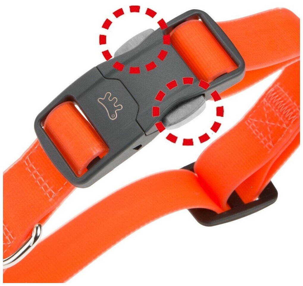 Ошейник для собак Изготовлен из полиэстера с мягким ПВХ покрытием Мягкий эластичный материал Нетоксичный и гипоаллергенный, легко моется и имеет водоотталкивающее покрытие Не пропускает ультрафиолетовые лучи и устойчив к резким перепадам температур Инновационная автоматическая застежка с магнитным механизмом для быстрого крепления карабина Легко и быстро надевается, безопасный и надежный, прошел испытание на прочность при растяжении Представлен различными размерами и яркими цветами Сочетается с традиционными поводками и шлейками этой же линейкиБлагодаря ярким расцветкам ошейники Evolution сочетают в одном продукте технологичность, простоту использования и современные тренды. Представленные различными размерами, они идеально подходят для любых пород собак. Ошейники изготовлены из одновременно мягкого и прочного эластичного материала, в то время как внутренняя лента – из полиэстера с мягким ПВХ покрытием. Этот особый материал отличается от других наличием большого количества преимуществ: он нетоксичен и гипоаллергенен, моется мыльным раствором, не пропускает ультрафиолетовые лучи и устойчив к резким перепадам температур. Ошейник также имеет водоотталкивающее покрытие, не позволяющее грязи задерживаться на его поверхности, а это значит, что он идеально подойдет для прогулок в дождь, так как лента остается сухой. Еще одной важной особенностью ошейников Evolution является магнитная застежка Matic - один простой щелчок, и он готов к работе! Революционная технология Matic, получившая эксклюзивный патент Ferplast, уже широко используется во многих линейках поводков и ошейников, облегчая и ускоряя процесс крепления карабина. Изготовленный из прочного, но легкого технопластика, он оснащен двумя кнопками закрытия, обеспечивающими максимальную надежность и предотвращая случайное открытие. Это возможно благодаря наличию внутреннего металлического замка, обеспечивающего повышенную прочность изделия и идеальное сцепление, в случае, если ваша собака сильно тянет поводок. Широкий ассортимент линейки Evolution представлен не только ошейниками, но также поводками и шлейками, идеально сочетающимися между собой для создания стильного и модного образа!