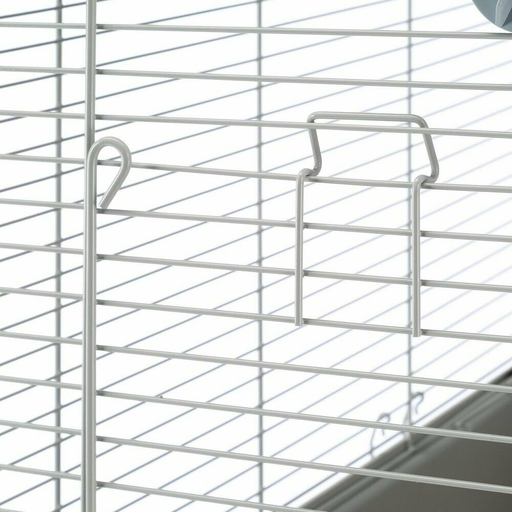 Сверху имеется специальное отверстие для подачи пищи. Дополнительные вентиляционные отверстия по всему периметру клетки помогут создать благоприятный микроклимат для маленького жильца.