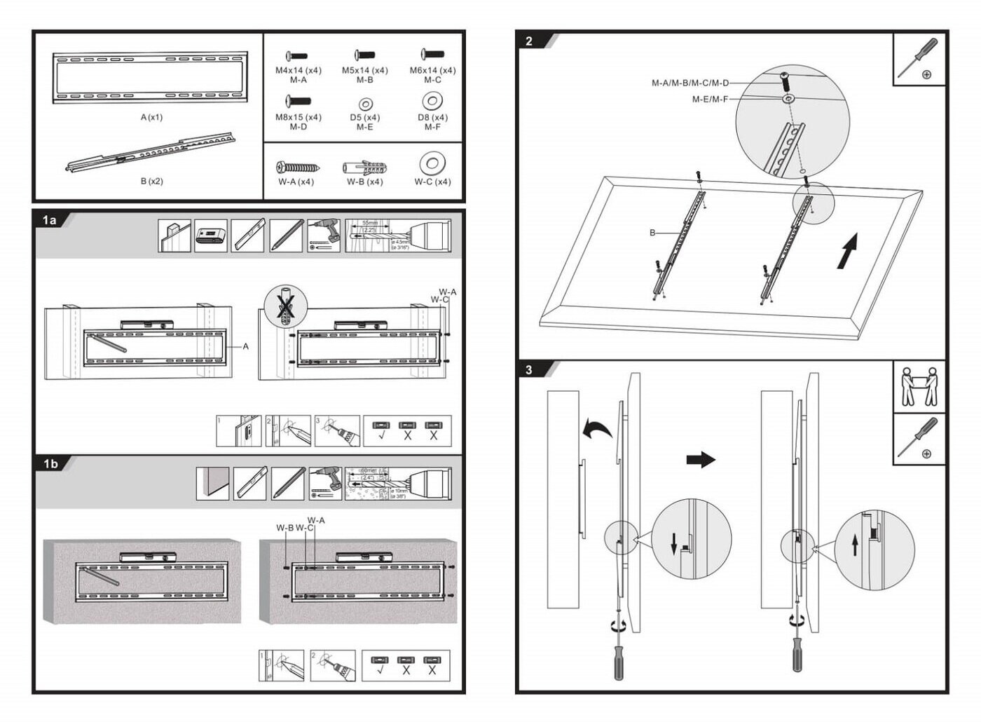 | Для моделей с диагональю экрана | 37" - 75" |