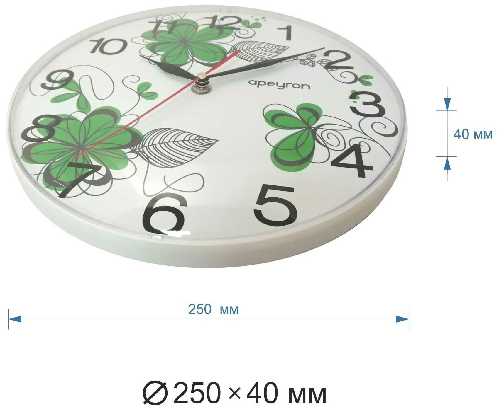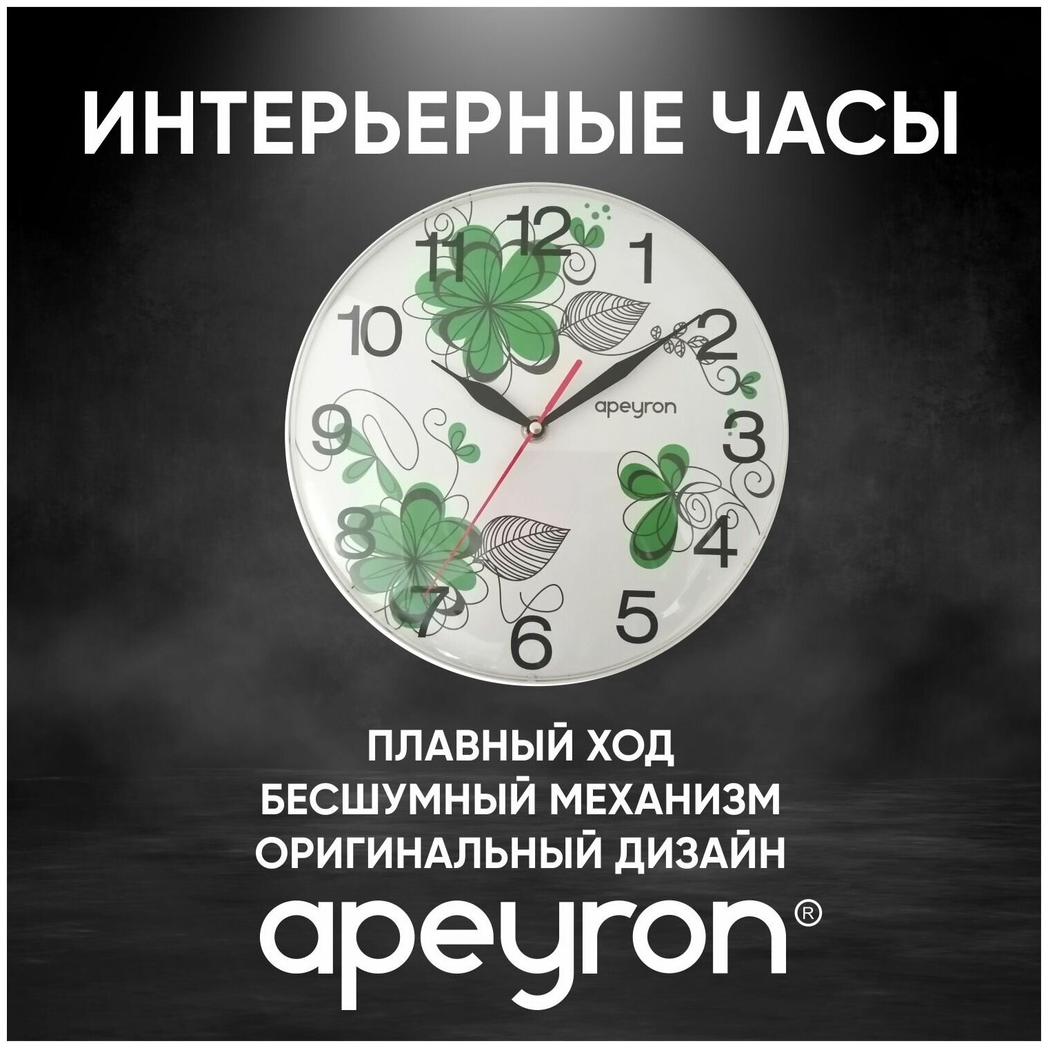 Apeyron - настенные часы, которые прекрасно освежат интерьер вашей комнаты и добавят изюминку в любой стиль. А цветовое решение данной модели в совокупности с защитным стеклом циферблата, выполненным в виде линзы, создадут в помещении зрительный эффект объемности окружающего пространства. Кроме того, благодаря стеклу линзе, циферблат легко различим даже для людей с ослабленным зрением. Так что данные часы станут очень полезным подарком Вашим престарелым родителям, или первой учительнице в школе. Данные часы не создадут ощущения перегруженности пространства. С одной стороны, максимально светлые, но при этом, за счет объемности стекла, смотрятся очень изысканно и неповторимо. Стекло циферблата выполняет несколько важных функций: помогает избежать солнечных бликов и придает часам очень необычный вид. Ну и, наконец, это превосходная защита часового механизма от различного рода загрязнений, а, следовательно, более долгая и бесперебойная служба изделия.