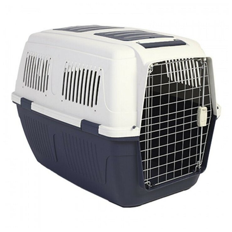 Эта прочная и максимально комфортная для питомца переноска выполнена из высококачественного пластика. Изделие снабжено надежными креплениями, в комплекте миска, которая крепится на дверь. Колеса в комплектацию изделия не входят и приобретаются отдельно.Металлическая дверца переноски плотно запирается, вентиляционные решетки позволяют питомцу свободно дышать, а крепкая и удобная пластиковая ручка максимально упрощает транспортировку животного. Переноска соответствует требованиям Международной Ассоциации Воздушного Транспорта (IATA) и подходит для авиаперевозок. Подходит для собак таких пород, как самоедская собака, золотой ретривер, немецкая овчарка, далматин, аляскинский маламут. Цвет: темно-синий, темно-серый. Размер изделия: 1020х740х760мм. Высота с колесами - 820мм. Максимально допустимая нагрузка: 55кг.