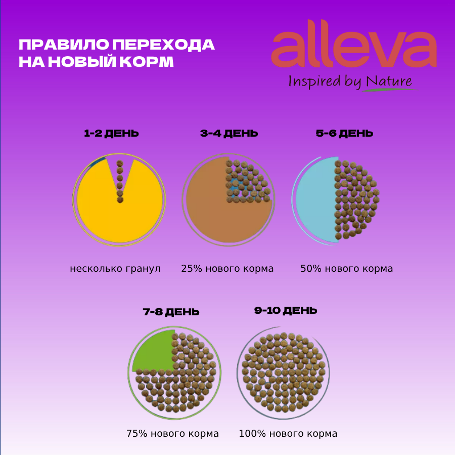 Alleva Equilibrium — качественные и питательные ингредиенты, приготовленные по собой формуле на пару, для максимальной сохранности полезности корма. В состав кормов Alleva Equilibrium добавлены фрукты и овощи, которые выполняют роль дополнительного источника растворимой клетчатки, витаминов и минералов, а также природных антиоксидантов, обеспечивающих свежесть корма на протяжении всего срока годности