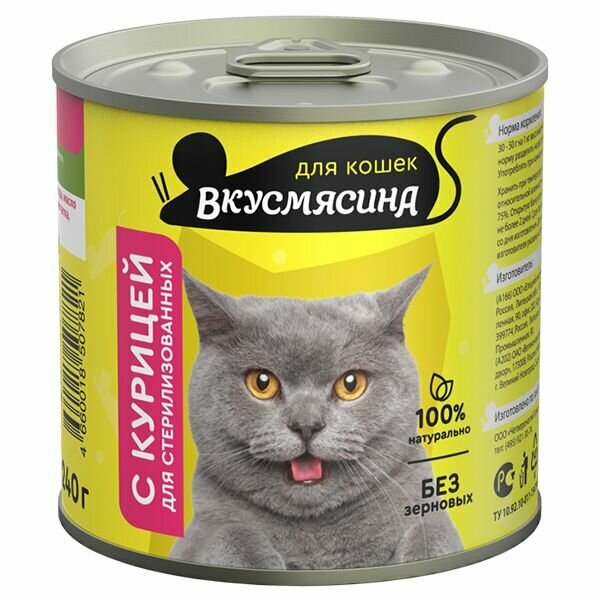 Вкусмясина влажный корм для стерилизованных кошек с курицей (240 г)