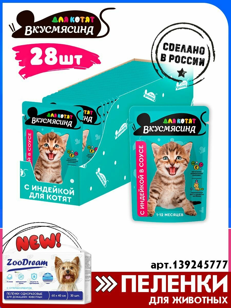 На сегодняшний день товар «Вкусмясина влажный корм для котят кусочки с индейкой в соусе (85 г)» можно купить с кешбеком в 1 магазине: Яндекс.Маркет