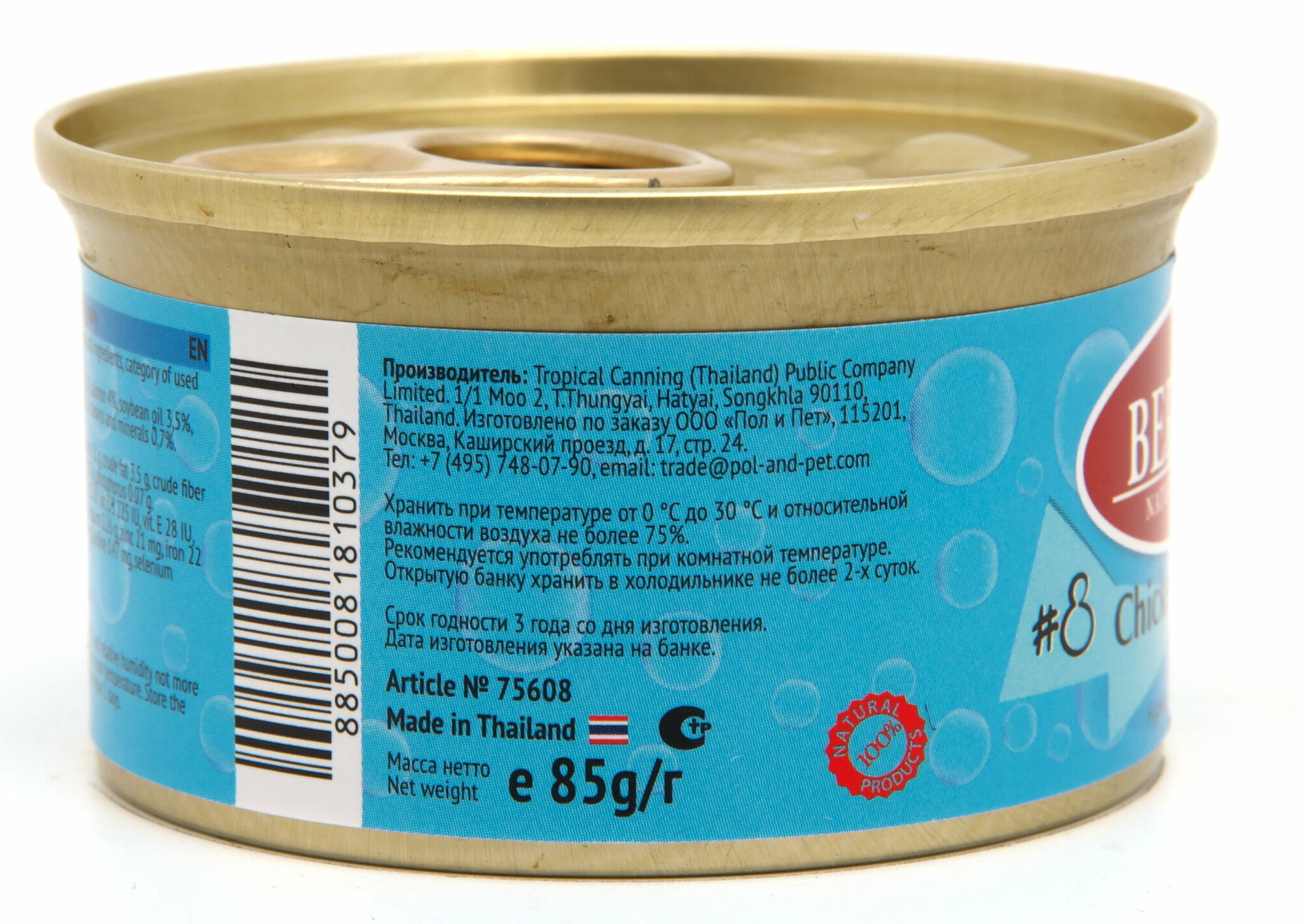 Сервис сравнения цен СкидкаГИД предлагает сравнить цены на товар «Berkley №8 влажный корм для кошек курица с лососем (85 г)»