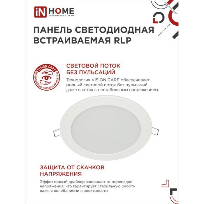 Панель светодиодная круглая RLP-eco 18Вт 230В 4000К 1080Лм 225/200мм белая IP40 IN HOME 4690612007984