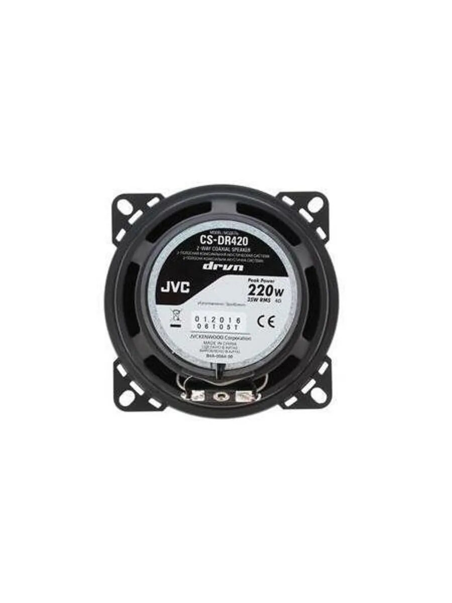 Двухполосная коаксиальная автомобильная акустическая система JVC CS-DR420 серии drvn с коническим динамиком из углеволокна с включением слюды прекрасно подходит для замены штатной акустики в вашем автомобиле.