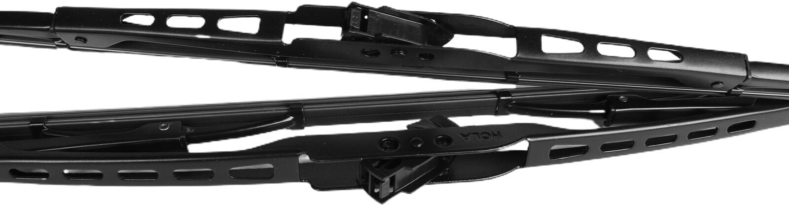 Щетки стеклоочистителей HOLA Wiper Blades предназначены для механической очистки стекол автомобилей от снега, воды, дорожной грязи и других загрязнений. Каркас щетки изготавливается из стального листа методом холодной штамповки и получает высококачественное антикоррозийное гальваническое покрытие, после чего производится окраска. Коромысла щеток соединяются между собой через термопластовые вставки, которые обеспечивают высокую подвижность и надежность соединений деталей каркаса. Конструкция щеток стеклоочистителей HOLA Wiper Blades предназначена для всесезонного использования.