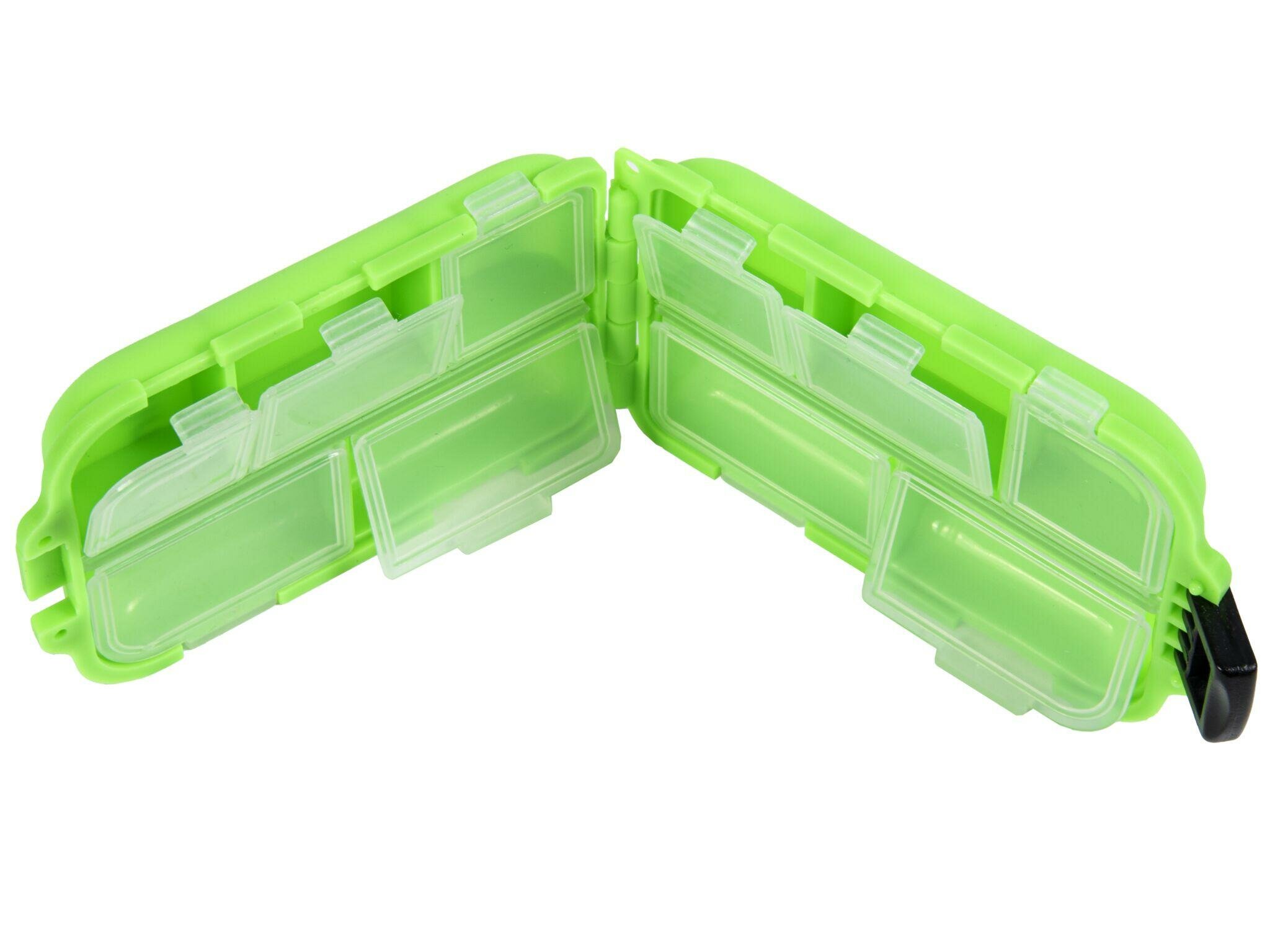 Маленькая двухстворчатая коробочка Salmo 80 HOOK BOX для крючков и других мелочей с отделениями в каждой ее части. Каждое отделение створки имеет защитную прозрачную крышку. Яркий зеленый цвет не даст ей потеряться и оставить Вас без необходимых вещей.