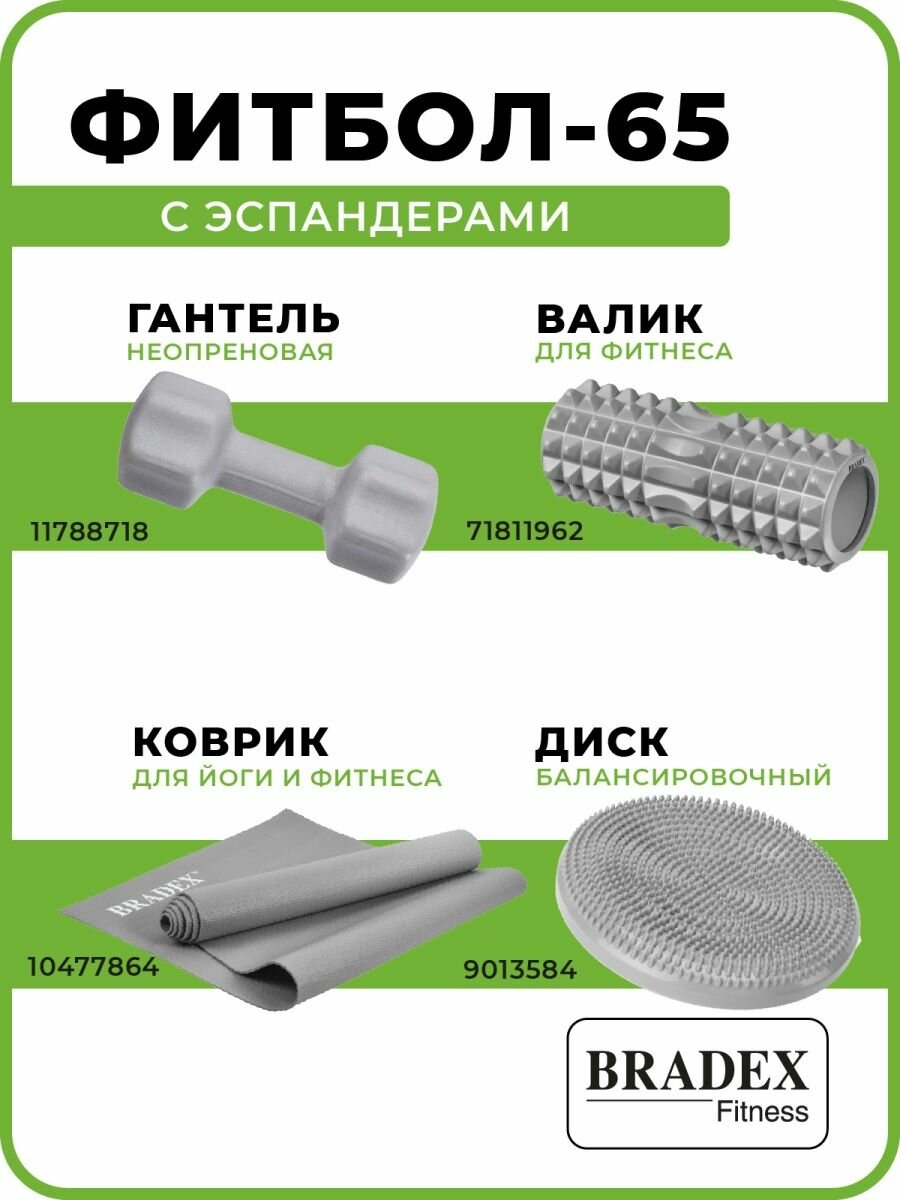 Мяч для фитнеса Bradex «ФИТБОЛ-65 с эспандерами» SF 0216