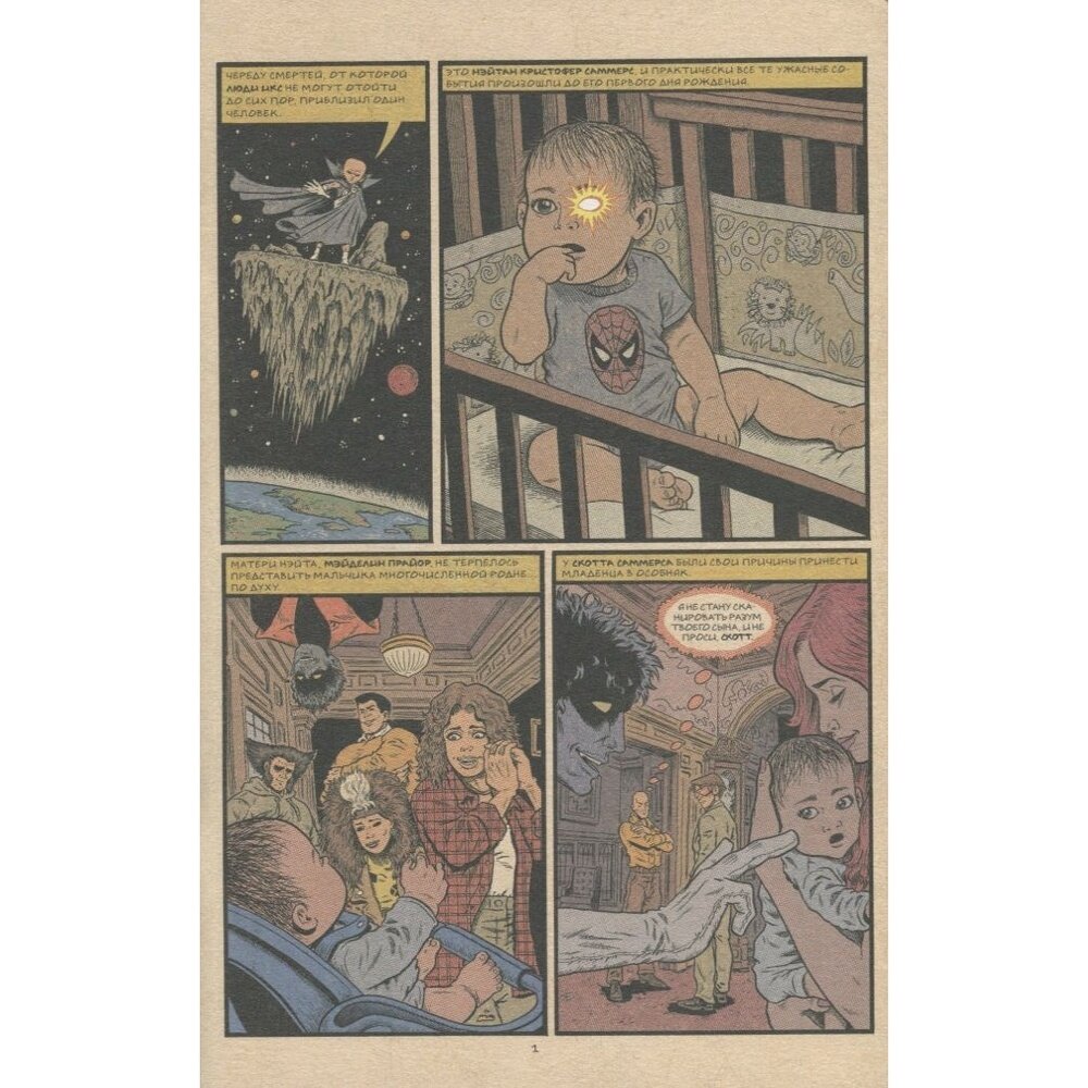Комикс достаточно маленький. Где-то 46 страниц, если правильно помню. Страницы выполнены качественно из плотной бумаги. История очень кратко повествует о рождении Кейбла и то мельком и скомкано. Если вы ожидали что тут будет рассказана история происхождения Иксов то спешу вас огорчить. Здесь этого нет. Я не разбираюсь в Марвел и сам черт там уже ногу сломит, но судя по описанию тут обещали всё разжевать чего в итоге не сделали и только запутали в хитросплетениях ещё больше