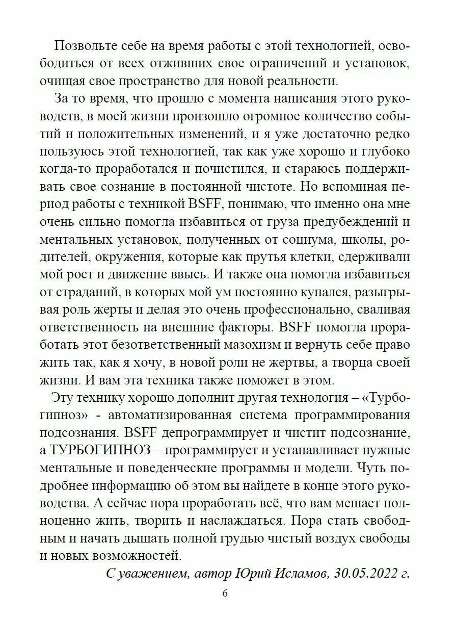 BSFF Технология свободы Практическое руководство по депрограммированию подсознания от психологических проблем и ментального мусора (Исламов Юрий Владимирович); Атмосфера, 2022