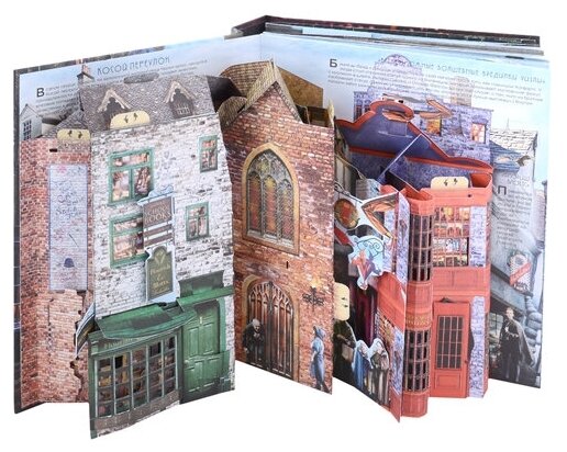 Просмотрите каждый из разворотов отдельно, а потом соедините их вместе, чтобы получить реалистичную трехмерную модель Косого переулка, Платформы 9 3/4 и "Гринготтса". Кроме того, внутри вы найдете более десяти картонных фигурок персонажей, которые сможете разместить на любой локации по своему усмотрению. Невероятный подарок для всех волшебников в душе!