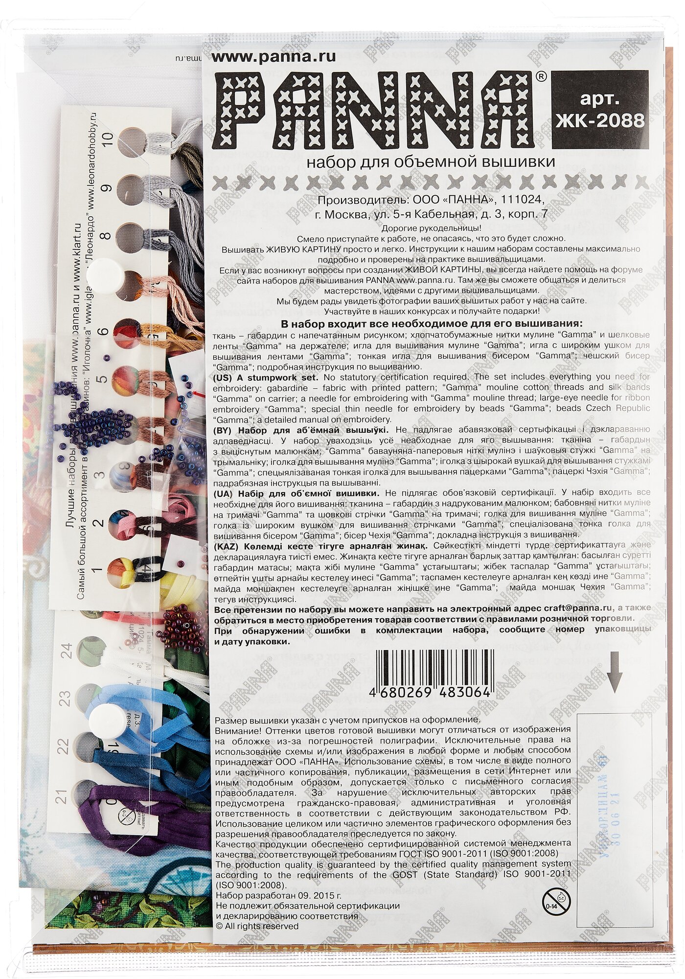 | Количество цветов | нитки - 17, ленты - 17 |