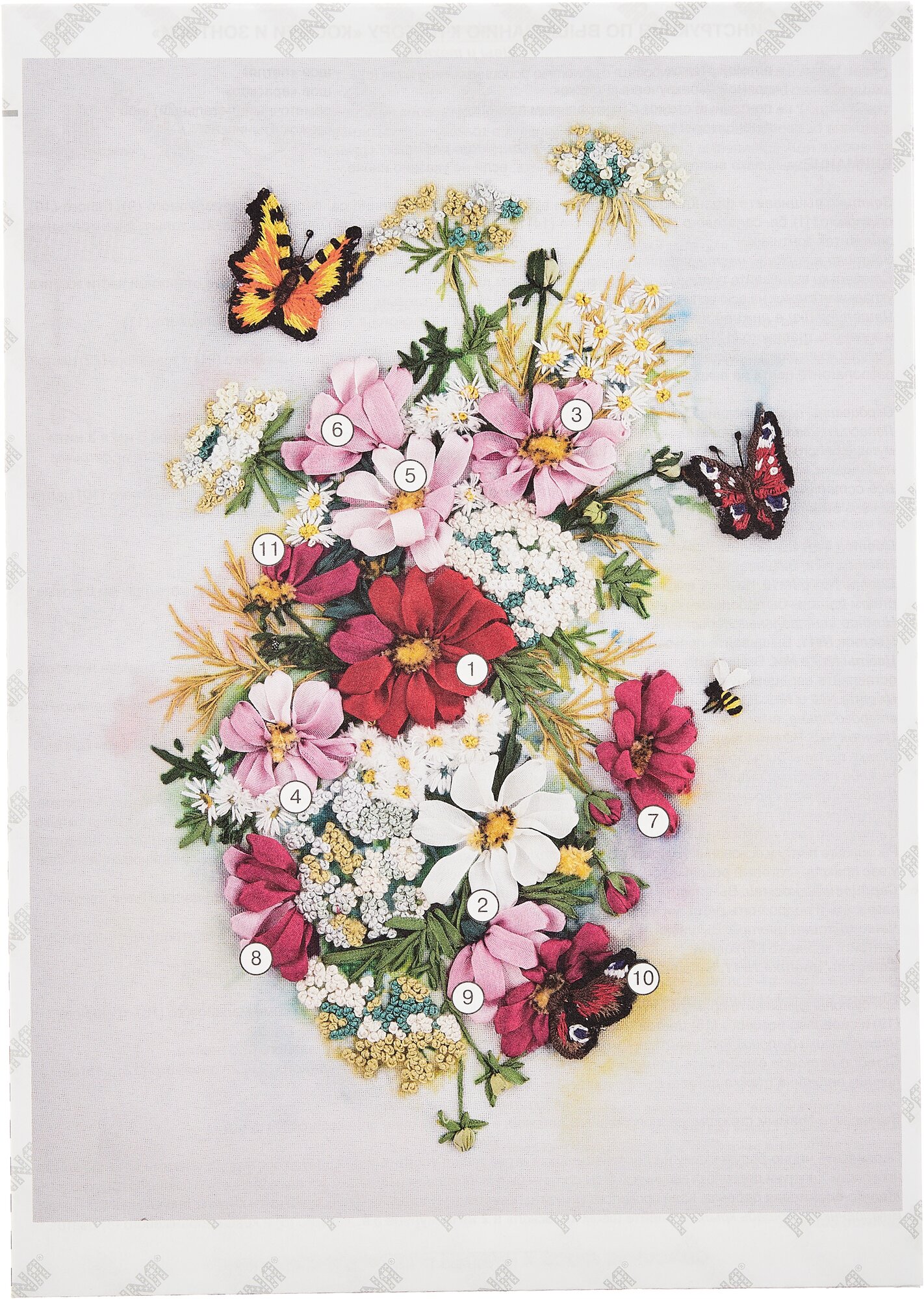 | В набор входит | ткань с нанесенным рисунком, инструкция с фотографиями, игла, мулине, шелковые ленты |