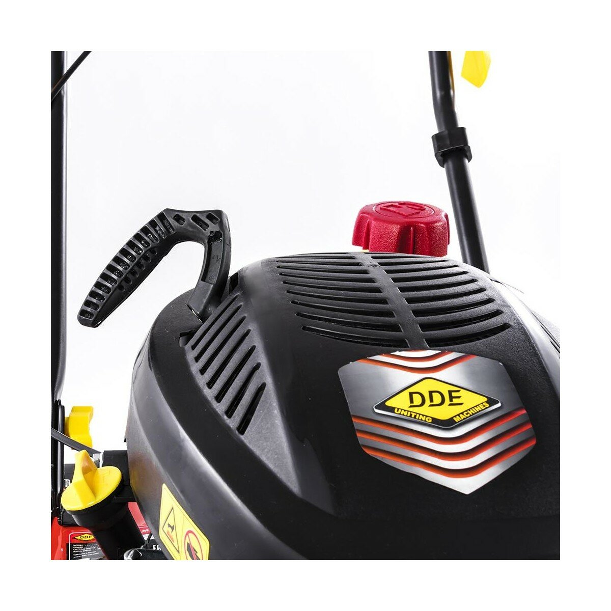 Легкая и маневренная бензиновая газонокосилка DDE LM 51 оснащена четырехтактным двигателем DDE 139, двойными закрытыми шарикоподшипниками колёс и ручным стартером. Широкие колеса не оставляют не оставляют колею на газоне.