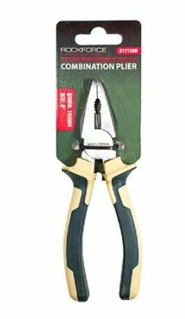 Плоскогубцы комбинированные с эргономическими рукоятками Cr-V6"-150мм, на держателе ROCKFORCE Комбинированные плоскогубцы предназначены для проведения слесарных работ, удержанию деталей или перекусыванию проволоки. Плюсом инструмента являются нескользящие рукоятки из двухкомпонентного материала. Упоры для пальцев позволяют зажимать детали с большим усилием.