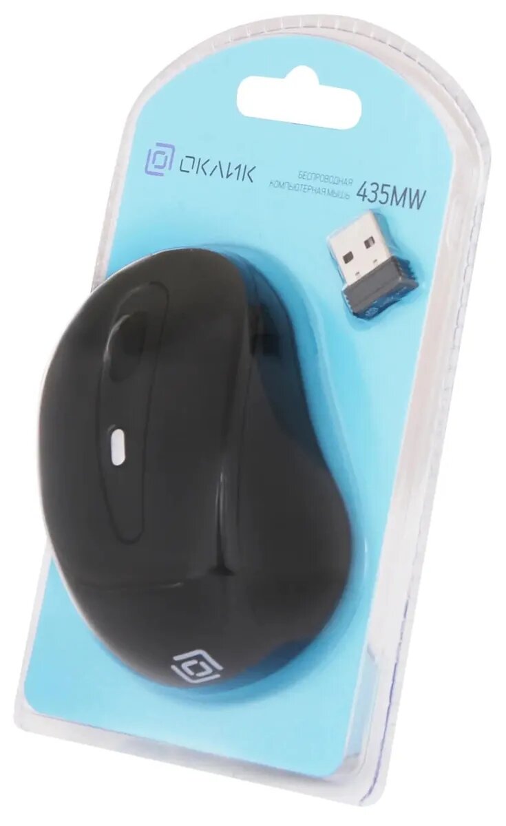 Беспроводная мышь 435 MW от надежного производителя Oklick — это эргономичное решение для Вашего компьютера! Представленная модель относится к оптическому типу и обладает высоким разрешением 800/1200/1600 точек на дюйм. Для начала работы с мышью следует подключить ее к ПК посредством USB-интерфейса. Конфигурация устройства осуществится автоматически без специальных драйверов. Соединение строится по типу радиосвязи на частоте 2,4 гигагерца. USB-приемник имеет компактные размеры и убирается в корпус.