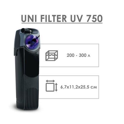 AQUAEL UNIFILTER UV 750 - внутренний фильтр для очищения и насыщения кислородом воды в аквариумах. Горизонтальное расположение камеры ротора облегчает его очистку без необходимости демонтажа фильтра. Превосходно подходит для палюдариумов и акватеррариумов. Съемный пластиковый префильтр осуществляет предварительную механическую очистку воды, задерживая крупные частицы грязи.