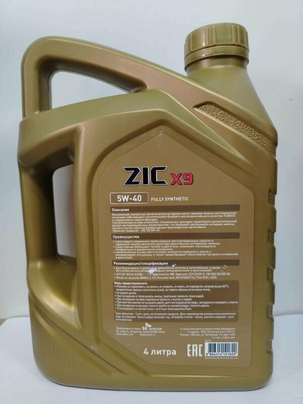 Моторное масло ZIC X9 5W-40 4л синтетическое 162613