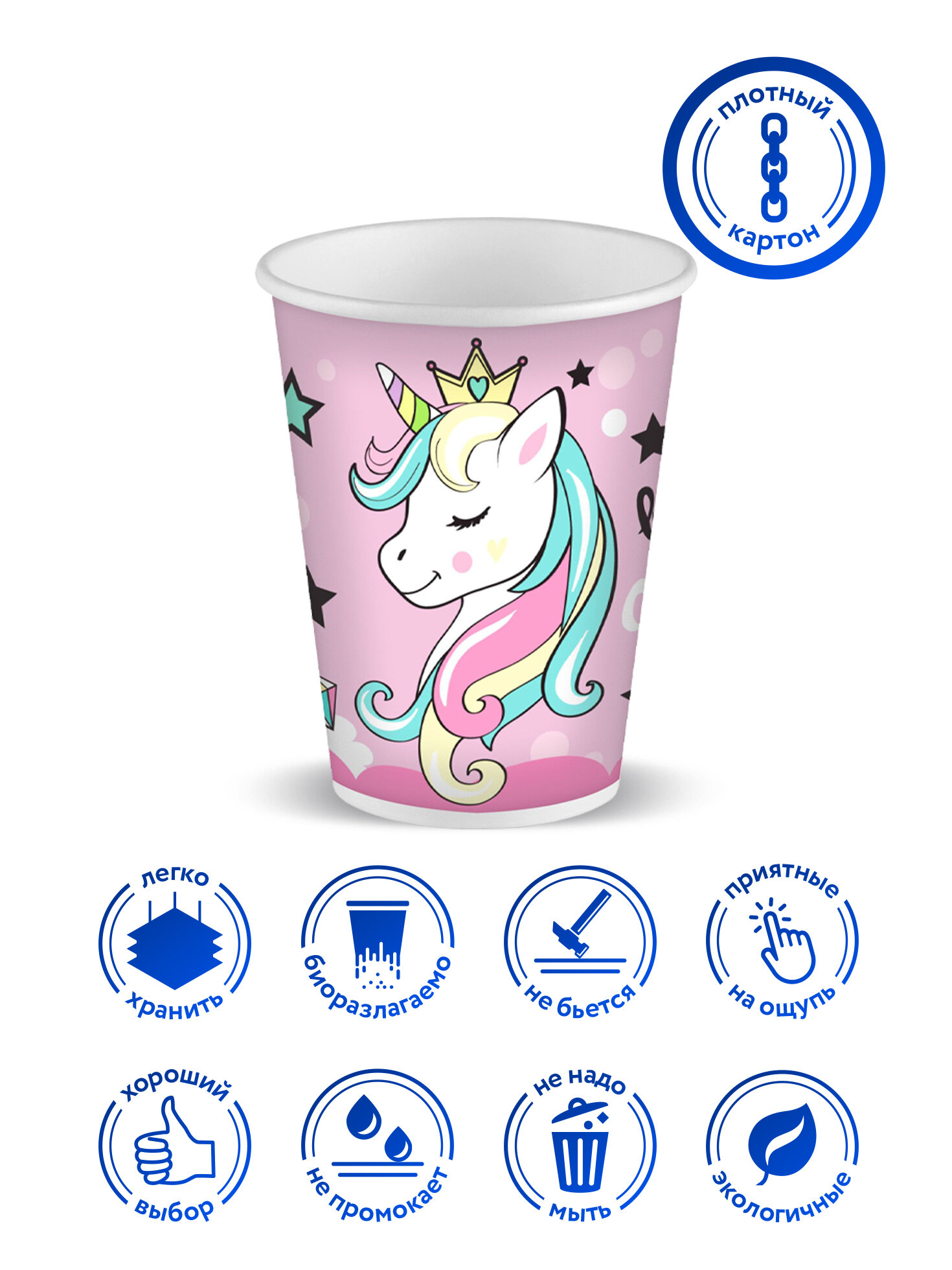 Стаканы 250 мл «Единорог» выполнены из специальной плотной бумаги, герметичны и не пропускают жидкость. Одноразовая праздничная посуда станет дополнительным украшением торжества, а также поможет минимизировать время организации знаменательного события. Одноразовые бумажные стаканы избавят Вас от необходимости мыть посуду, оставшуюся после вечеринки. Лучшее решение для любого праздника и корпоративных мероприятий любого формата — купить бумажные стаканчики с ярким дизайном.