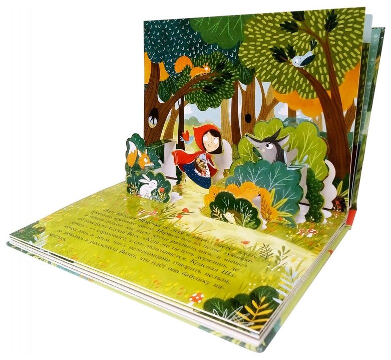 Такая книжка-панорамка станет прекрасным подарком малышам от 1 до 3 лет. Твердый переплет книги «Красная шапочка», украшенный блестящей фольгой и глянцевым лаком, и крепкие страницы из прочного белого картона порадуют и родителей. Объемные элементы надежно закреплены в конструкции книги, страницы покрыты влагостойкой пленкой, а очень прочная (антивандальная) обложка выполнена из картона повышенной плотности — все это гарантирует, что издание прослужит долго даже при ежедневном использовании.