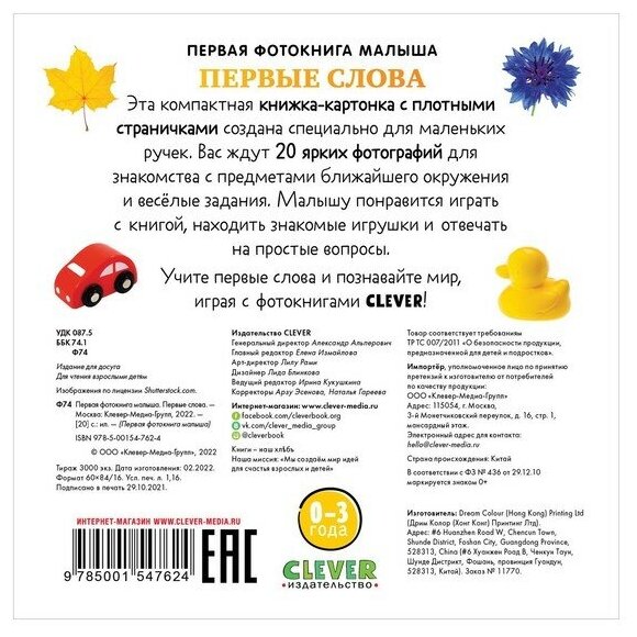 Сервис сравнения цен СкидкаГИД предлагает сравнить цены на товар «Книга: Первая фотокнига малыша. Первые слова (без автора); Clever, 2022»