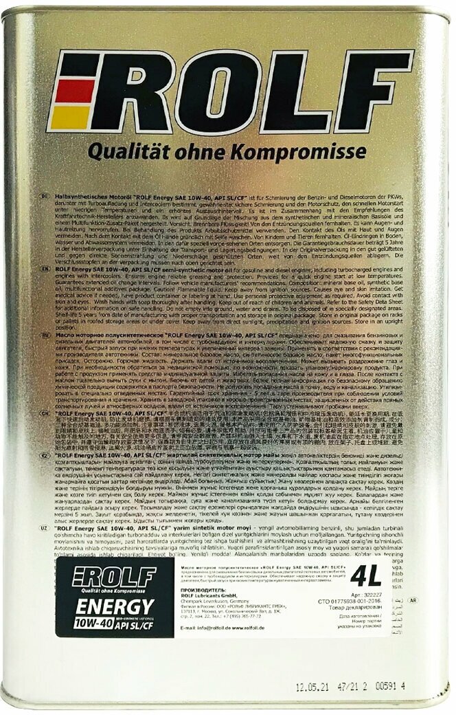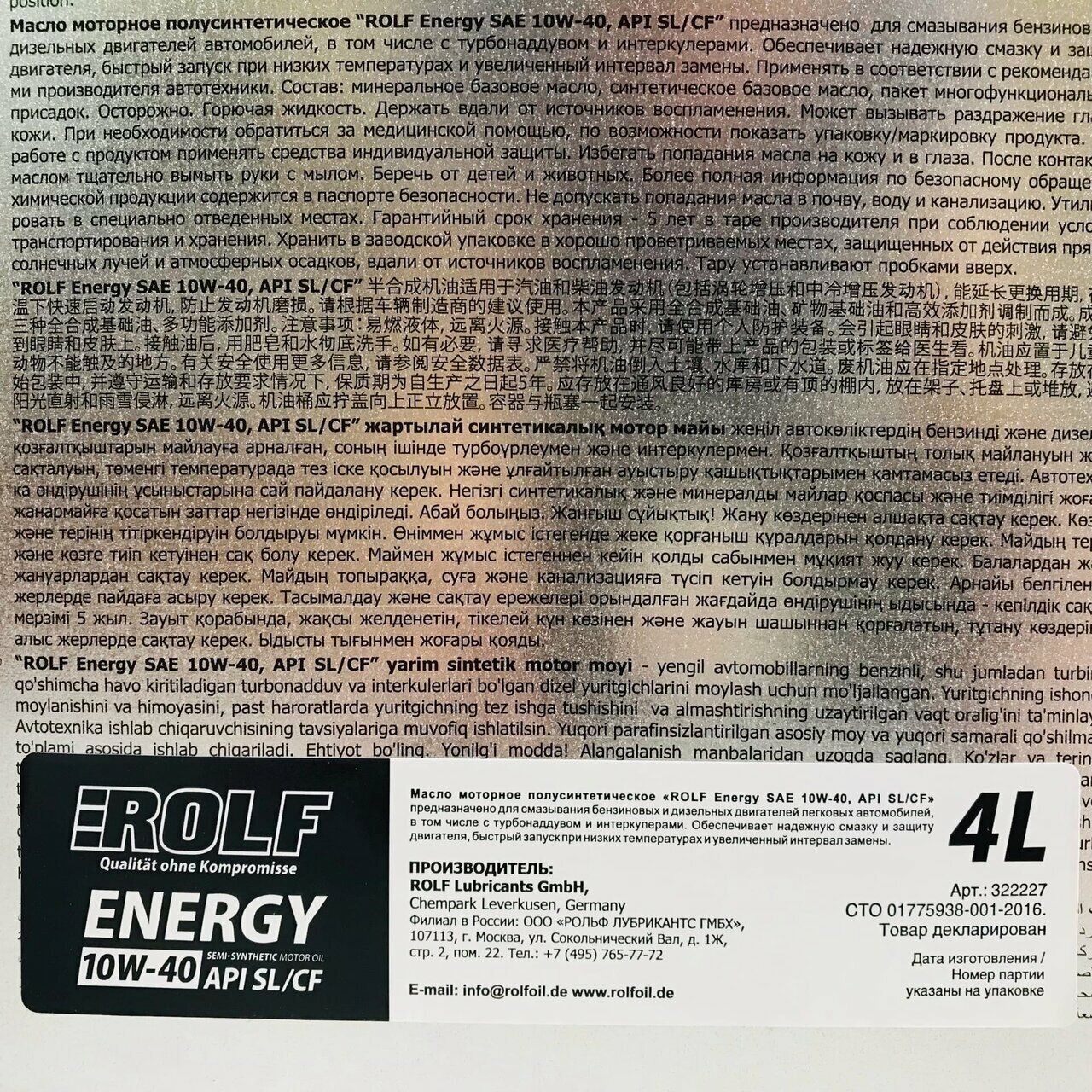 - Грязный ROLF. Полусинтетическое моторное масло Energy 10W-40