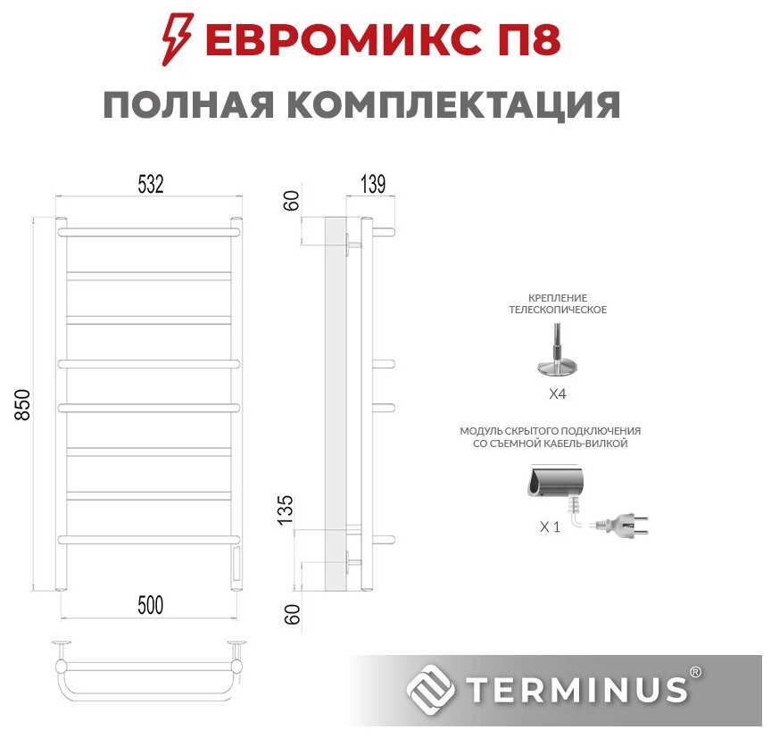 Полотенцесушитель Terminus Евромикс П8 500х800 бп500 водяной
