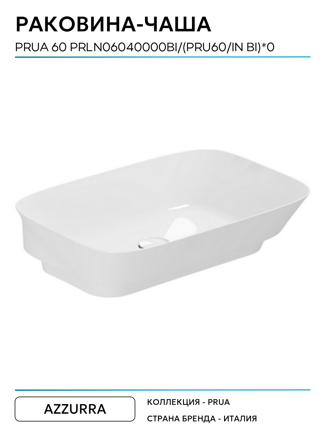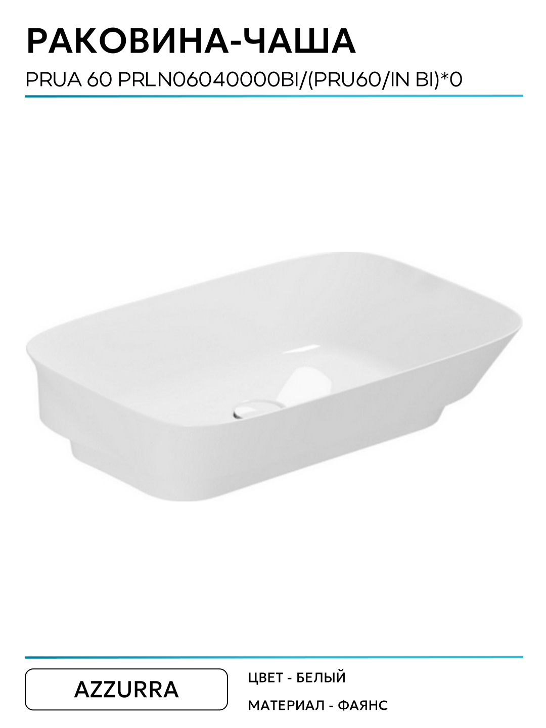 Раковина-чаша Azzurra Prua 60 PRLN06040000BI/(PRU60/IN bi)*0.