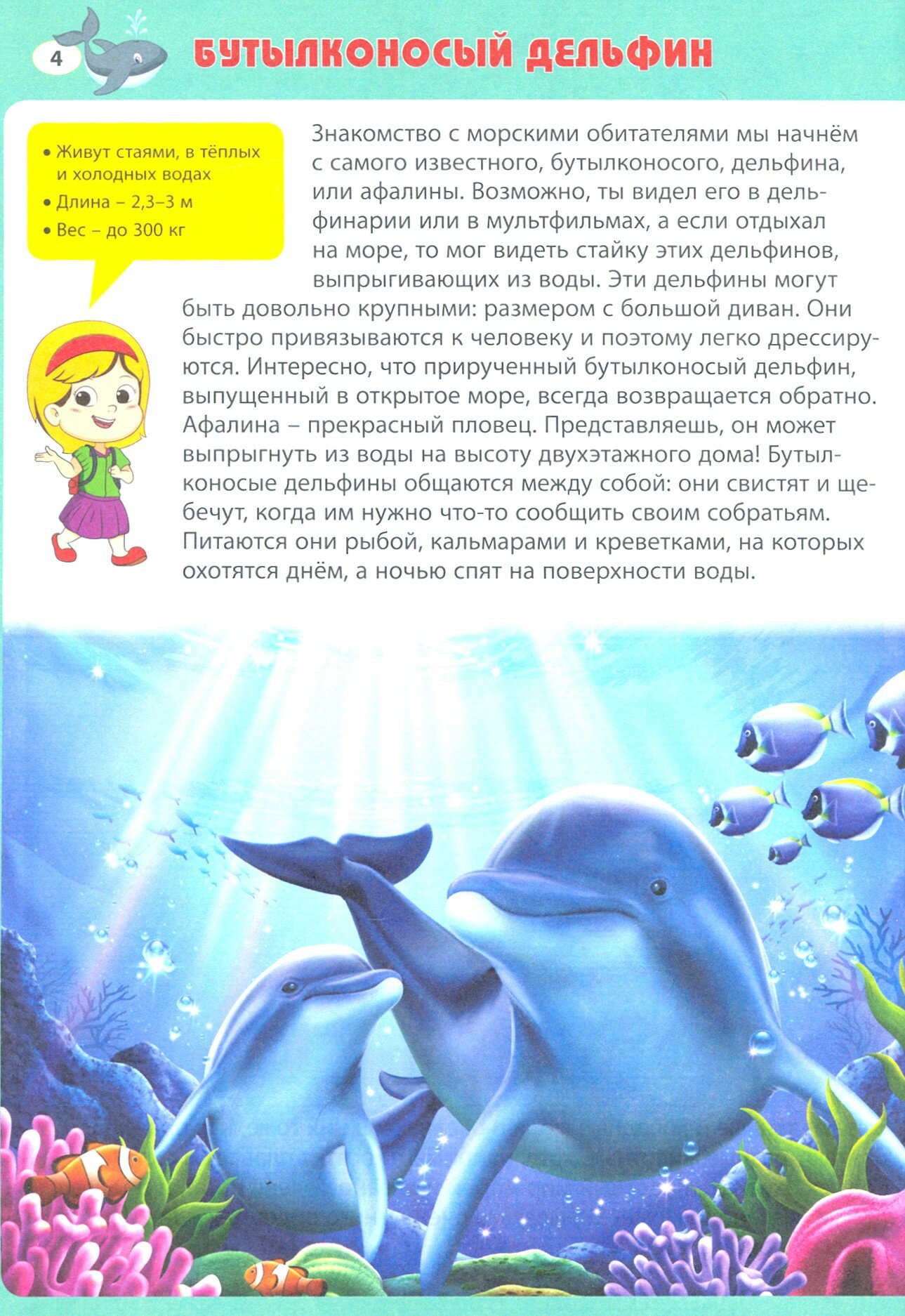 Перед вами книга о загадочных обитателях морей и океанов. Одних ваш ребёнок может увидеть на пляже или в воде, отдыхая с вами на море, других – в океанариуме, третьих – по телевизору… Наша красочная книга расскажет вашему малышу много интересного о рыбах и дельфинах, морских животных и пингвинах, познакомит с «жильцами» разных раковин, а яркие реалистичные картинки сделают ваше чтение ещё более увлекательным.