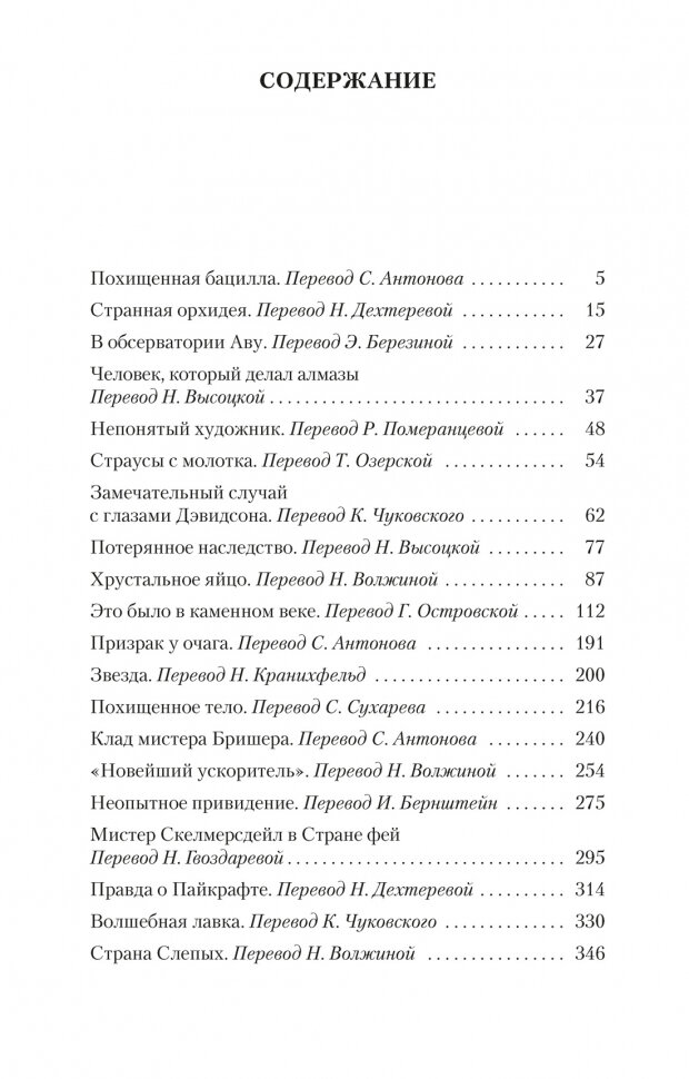 Была знакома только с большими романами данного фантаста. И какого было моё удивление, когда мне в руки попал сборник с малой прозой. Спасибо издательству за такую прекрасную возможность! Было интересно. Рассказы оригинальные и изобретательные, действительно, напоминают рассказы Артура Конан Дойла. Когда не хочется читать длинные тяжёлые книги, рекомендую вам данный сборник. Поверьте, вы не пожалеете. Если такие произведения как "Машина времени" и "Война миров" часто переиздают, то подобную подборку практически невозможно найти