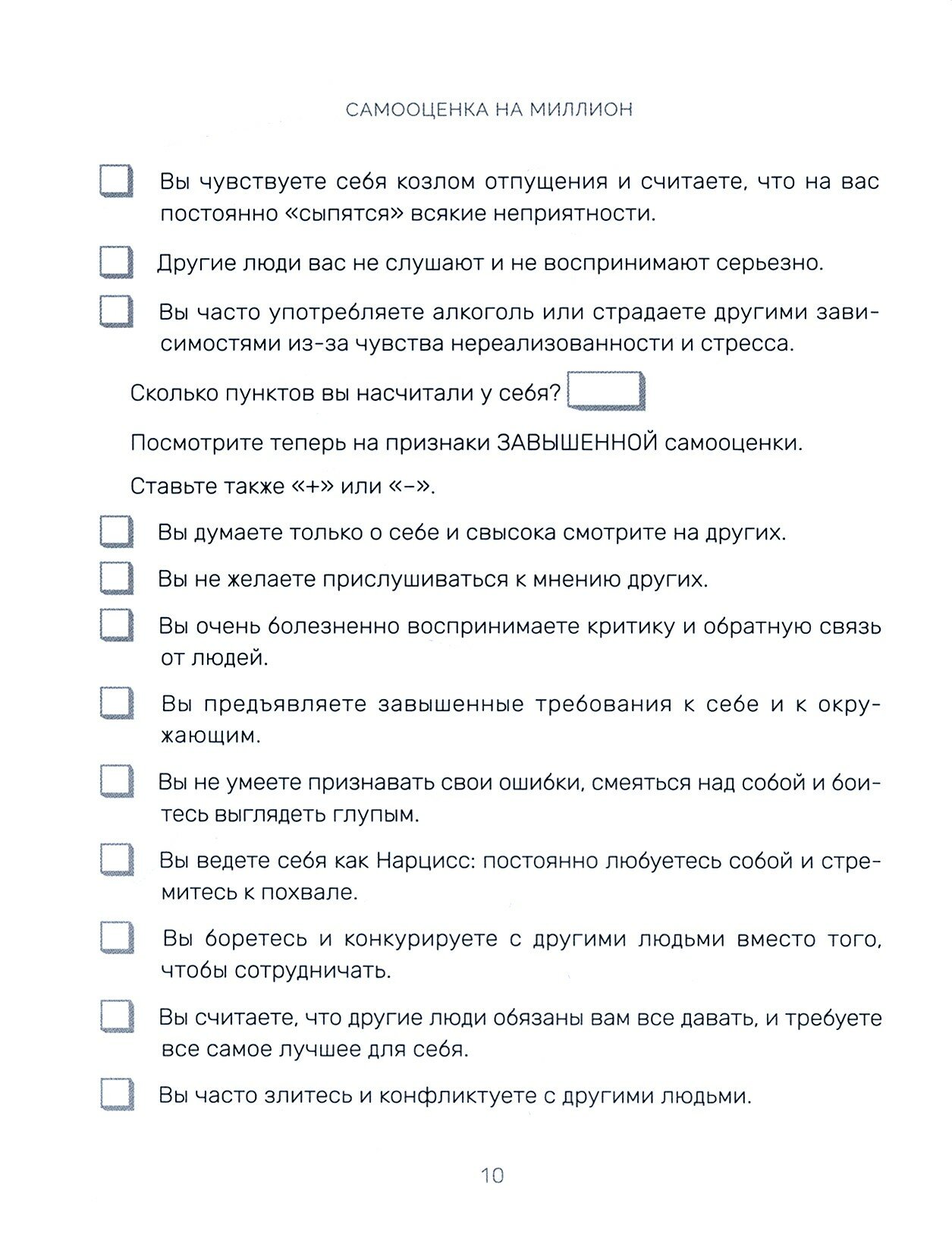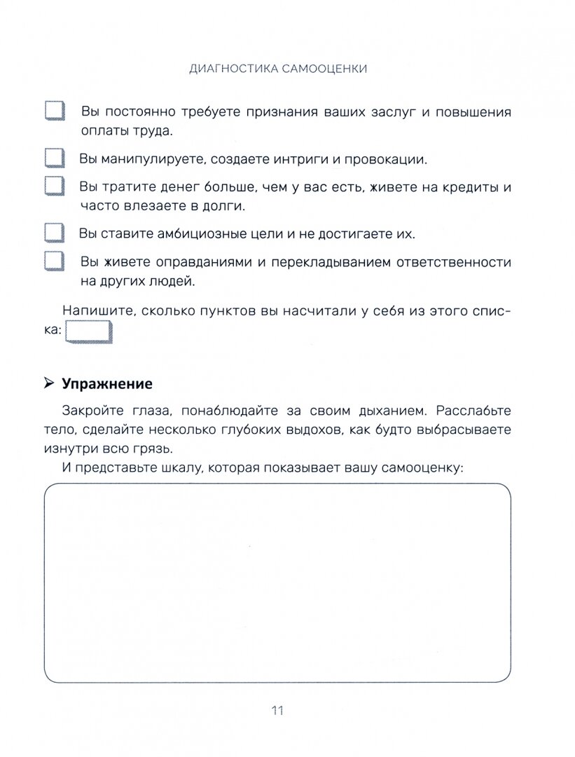 Рабочая тетрадь по самооценке, много места для записей, сам текст занял бы меньше половины.