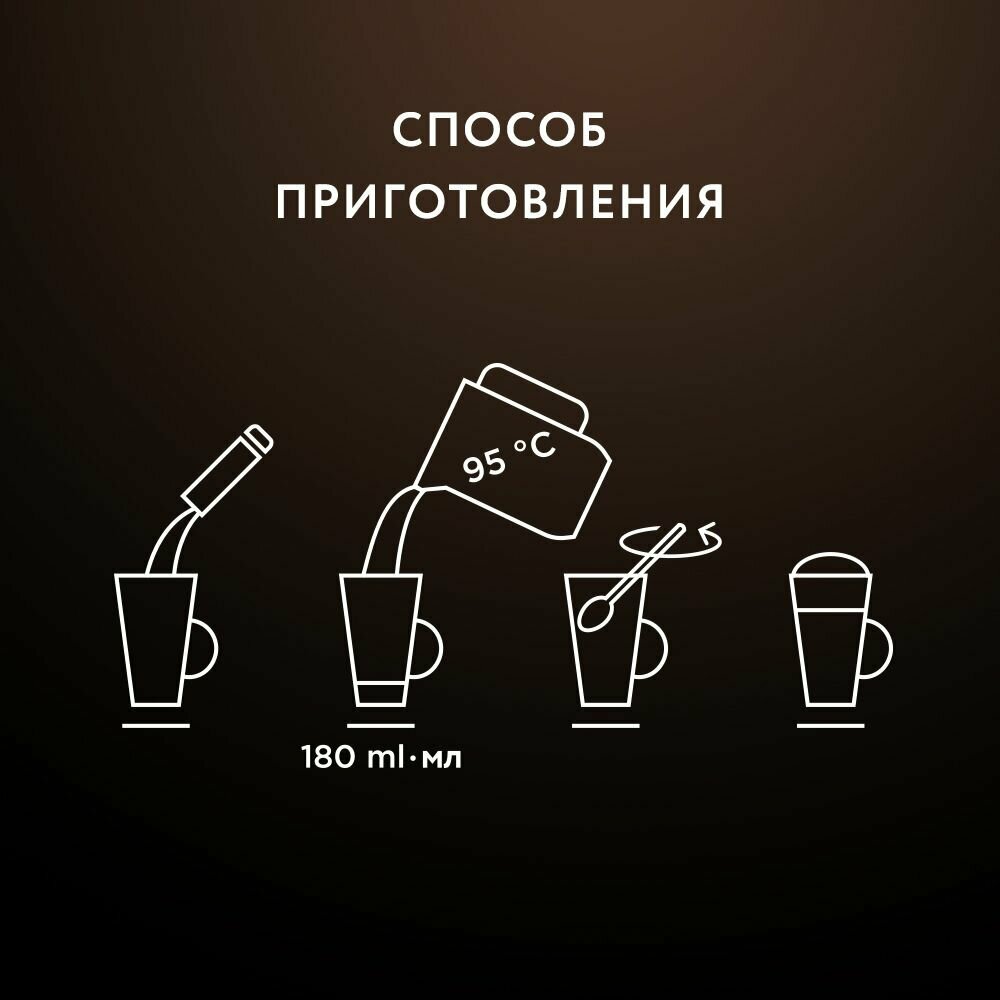 | Состав | Заменитель сухих сливок на растительной основе (кукурузный сироп, гидрогенизированное кокосовое масло, регуляторы кислотности (E340(ii), E332(ii), E500(ii)), молочный белок, обезжиренное молоко, эмульгаторы (E471, E472e), агент антислеживающий (E341(iii), E170), caxар, агент желирующий (E508), карамелизированный сахар, подсластитель (стевия), молочный кальций, уплотнитель (E511)), сахар, пенообразователь (комплексная пищевая добавка «Мока СВ 5 ЕХ» (сухое обезжиренное молоко, глюкозный сироп (пшеничный, кукурузный), растительный жир (кокосовый), сухая молочная сыворотка, стабилизатор (E340))), кофе растворимый сублимированный (freeze-dried), ароматизатор. |
