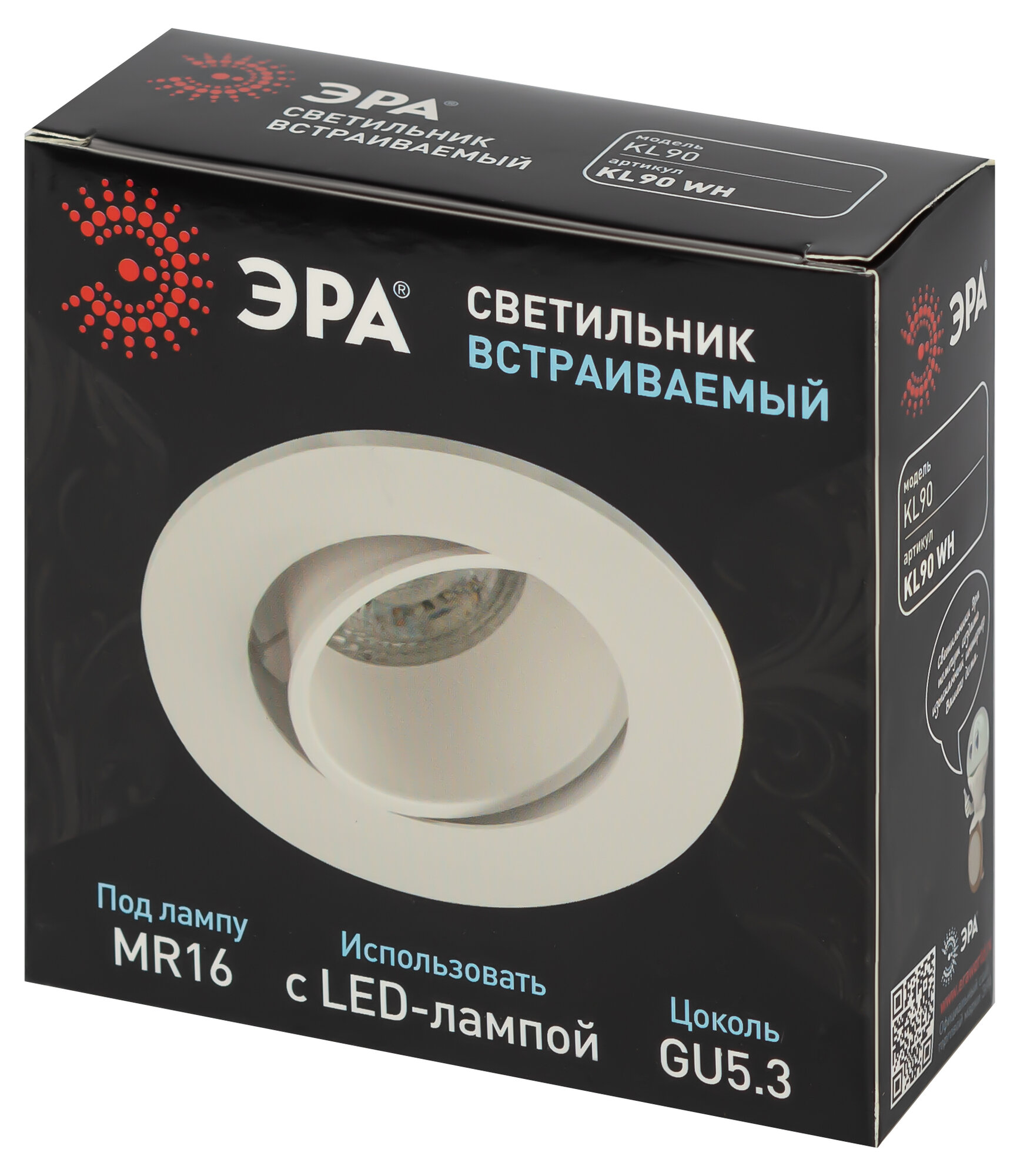 светильник точечный эра kl90 wh gu5.3 11вт ip20 белый б0054369
