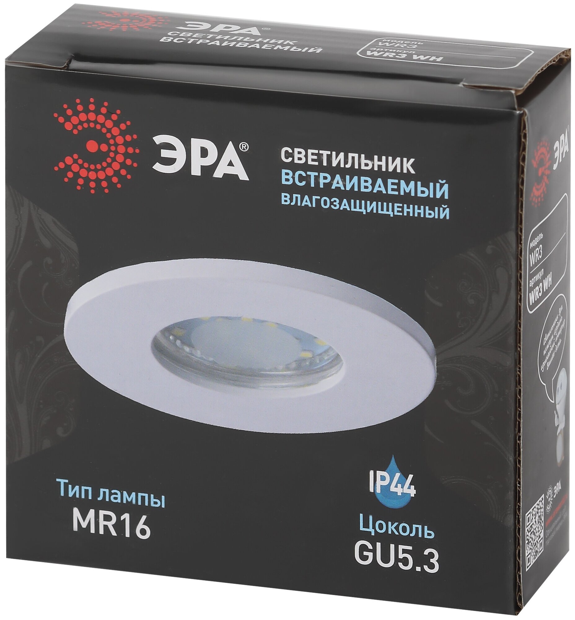 светильник точечный эра wr3 wh gu5.3 50вт ip44 белый б0054368