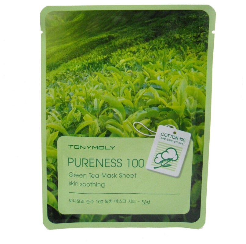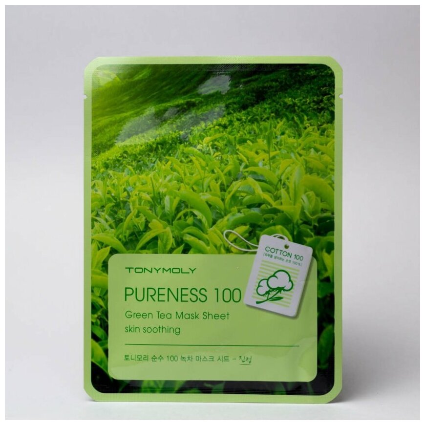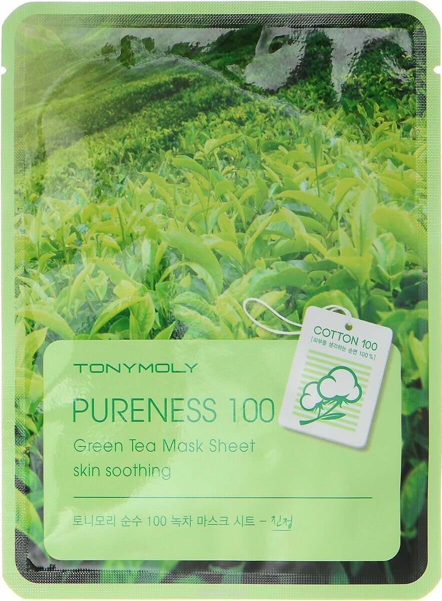 TONYMOLY Очищающая тканевая маска для лица с экстрактом зелёного чая PURENESS 100 Green Tea Mask Sheet 21мл (397219)