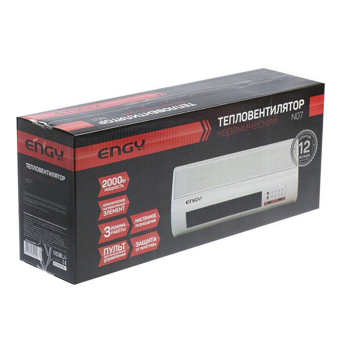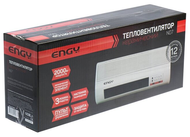 Тепловентилятор Engy N07 14305 имеет удобную панель управления, которая позволяет настраивать режимы устройства. Прибор может работать не только на обогрев, но и на вентиляцию. Изделие имеет второй класс электрозащиты. Монтаж тепловентилятора осуществляется на стену.